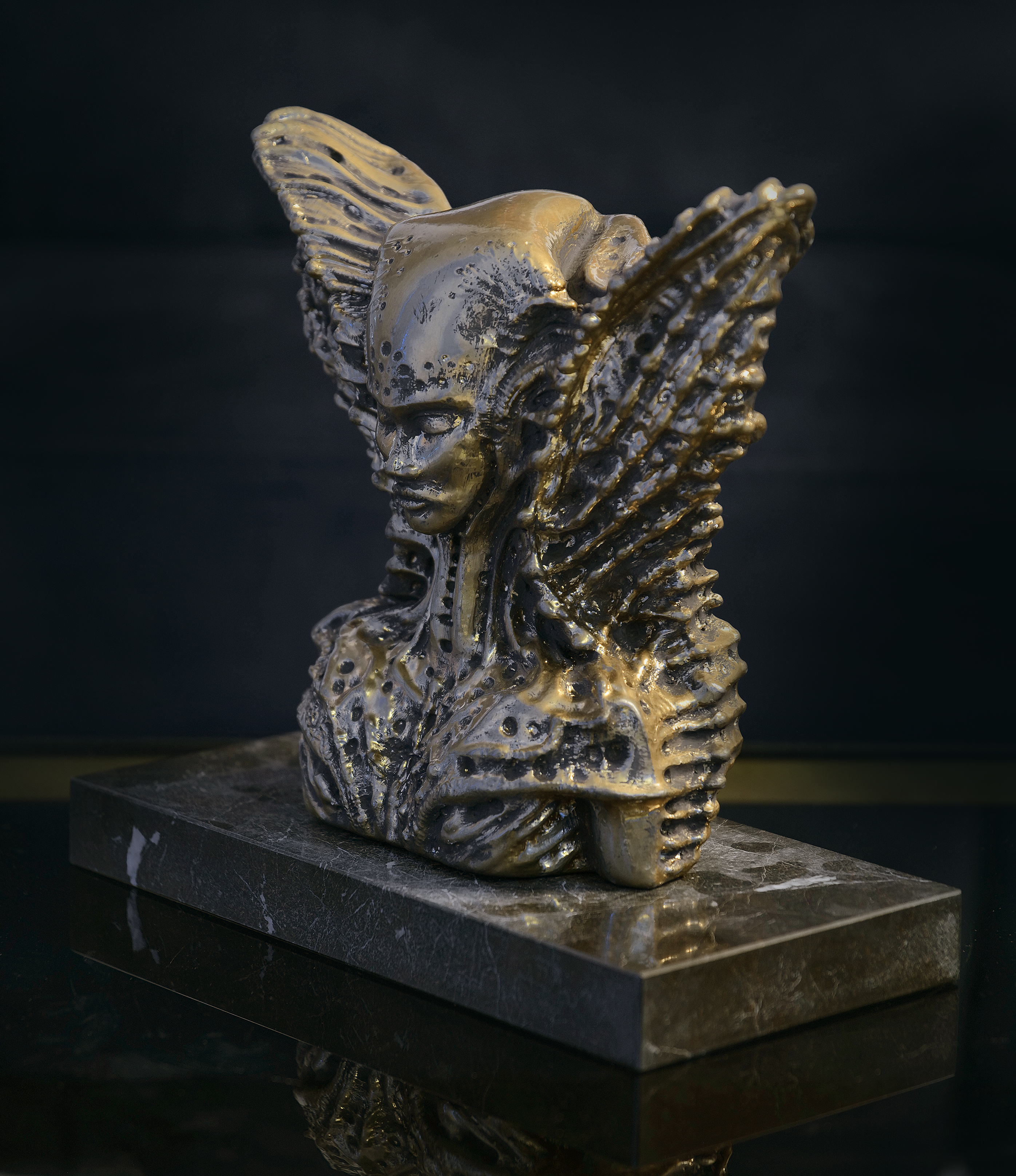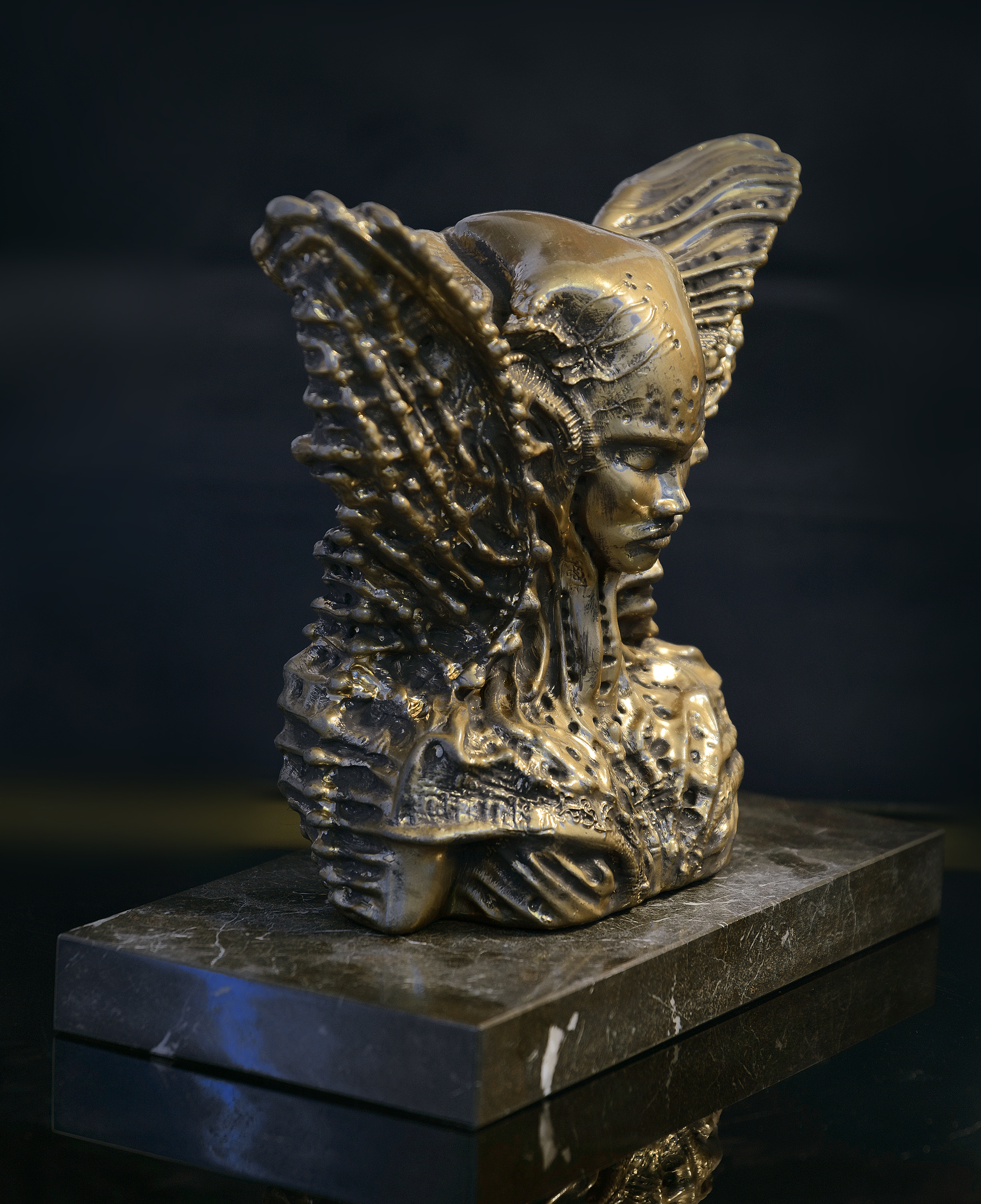 EVA 1 wysokość ok 32 cm , kamień , żywica , granit . Waga około 5kg pokryta płynnym brązem i patynowana. Sygnowana z tyłu