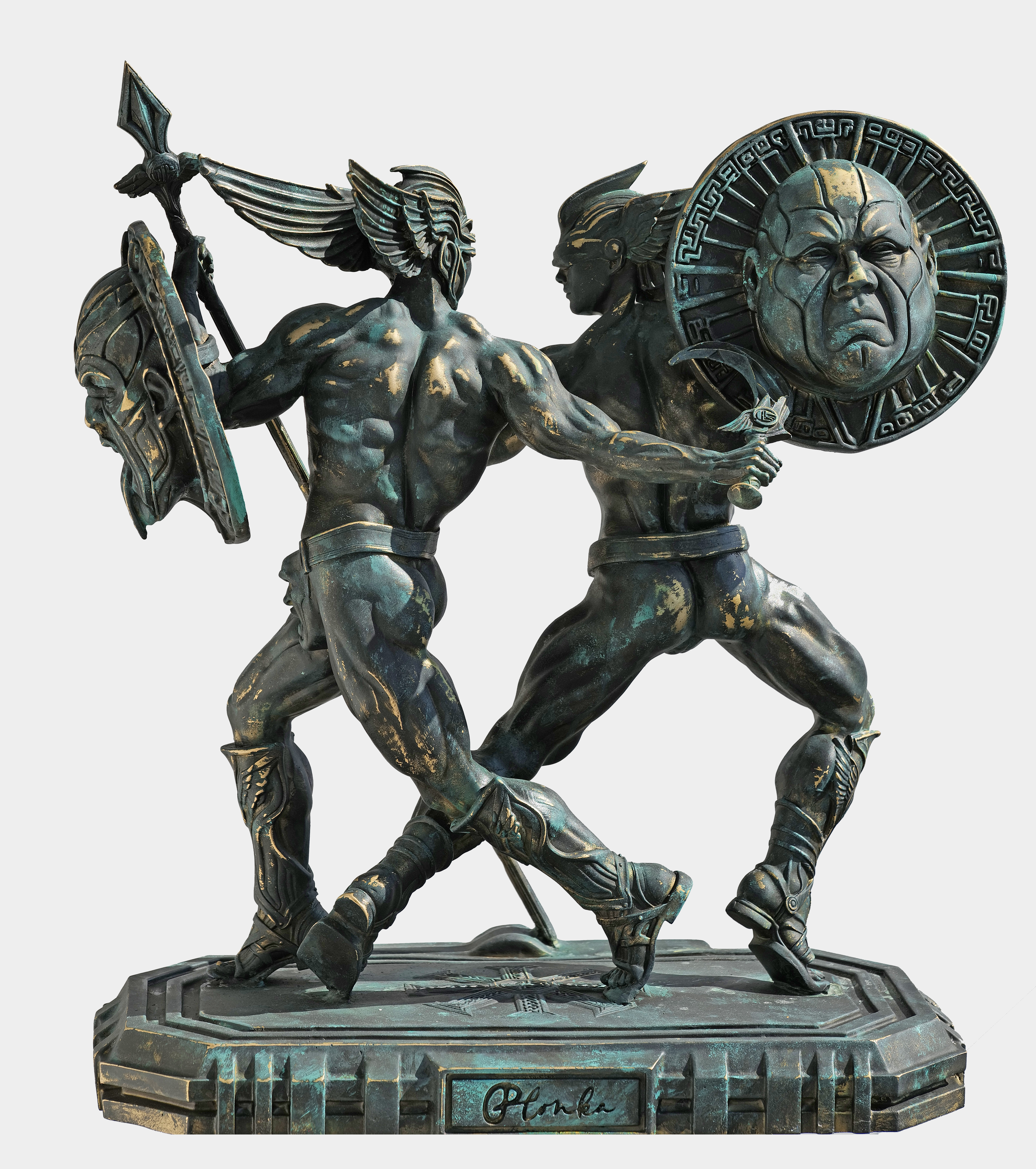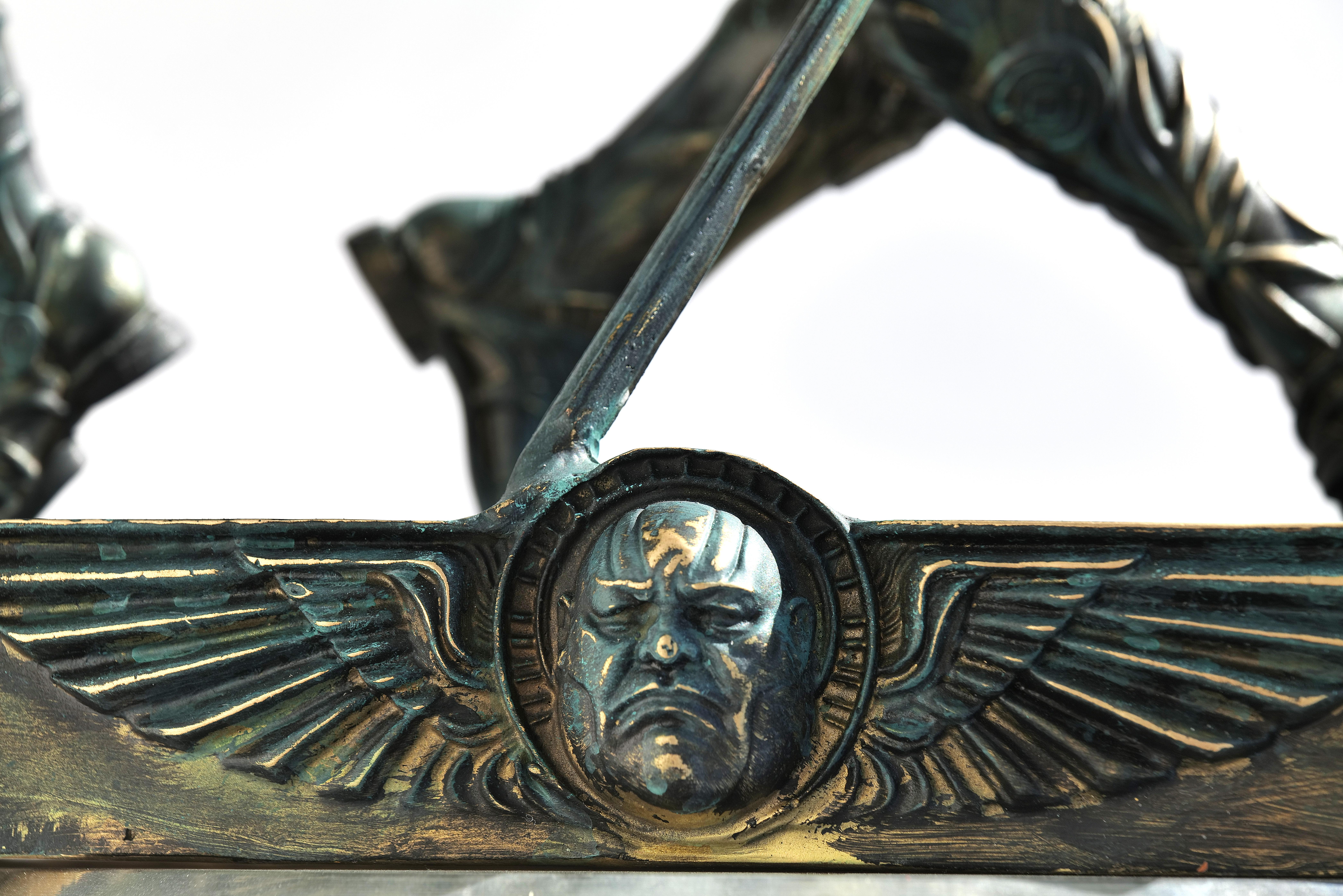 „DEUS X” to rzeźba czystego napięcia, siły i ponadczasowej symboliki, odlana z bogato patynowanego brązu. Dwie monumentalne, archetypiczne postaci zderzają się w dynamicznej, niemal rytualnej kompozycji — sugerując nie tylko fizyczną walkę, lecz głębszą, metafizyczną konfrontację. To nie jest scena. To manifest. Szlachetna patyna nadaje dziełu charakter starożytnego reliktu, jakby istniało od zawsze — raczej wydobyte z ziemi niż stworzone. Światło przesuwa się po jego powierzchni, odsłaniając muskularną precyzję i poczucie powściąganej energii, jak gdyby sama forma mogła w każdej chwili ożyć. „DEUS X” nie dekoruje przestrzeni — ono ją definiuje. Przyciąga uwagę, zatrzymuje ją i cicho dominuje otoczenie, wnosząc poczucie ciężaru, siły i transcendencji. Przy wysokości 60 cm osiąga rzadką równowagę: na tyle masywne, by przyciągać spojrzenia, a zarazem wystarczająco wyrafinowane do wnętrz, w których sztuka ma być częścią codziennego życia. To edycja limitowana — zaledwie 8 egzemplarzy. Każda rzeźba wykańczana jest indywidualnie, z unikatową patyną, dzięki czemu każdy egzemplarz stanowi niepowtarzalną wariację. Prezentowany obiekt jest pierwszym z serii. To dzieło dla wymagającego kolekcjonera — rzadkie, wyrafinowane i bezkompromisowo potężne. Bo prawdziwa sztuka nie prosi o uwagę. Ona ją bierze.