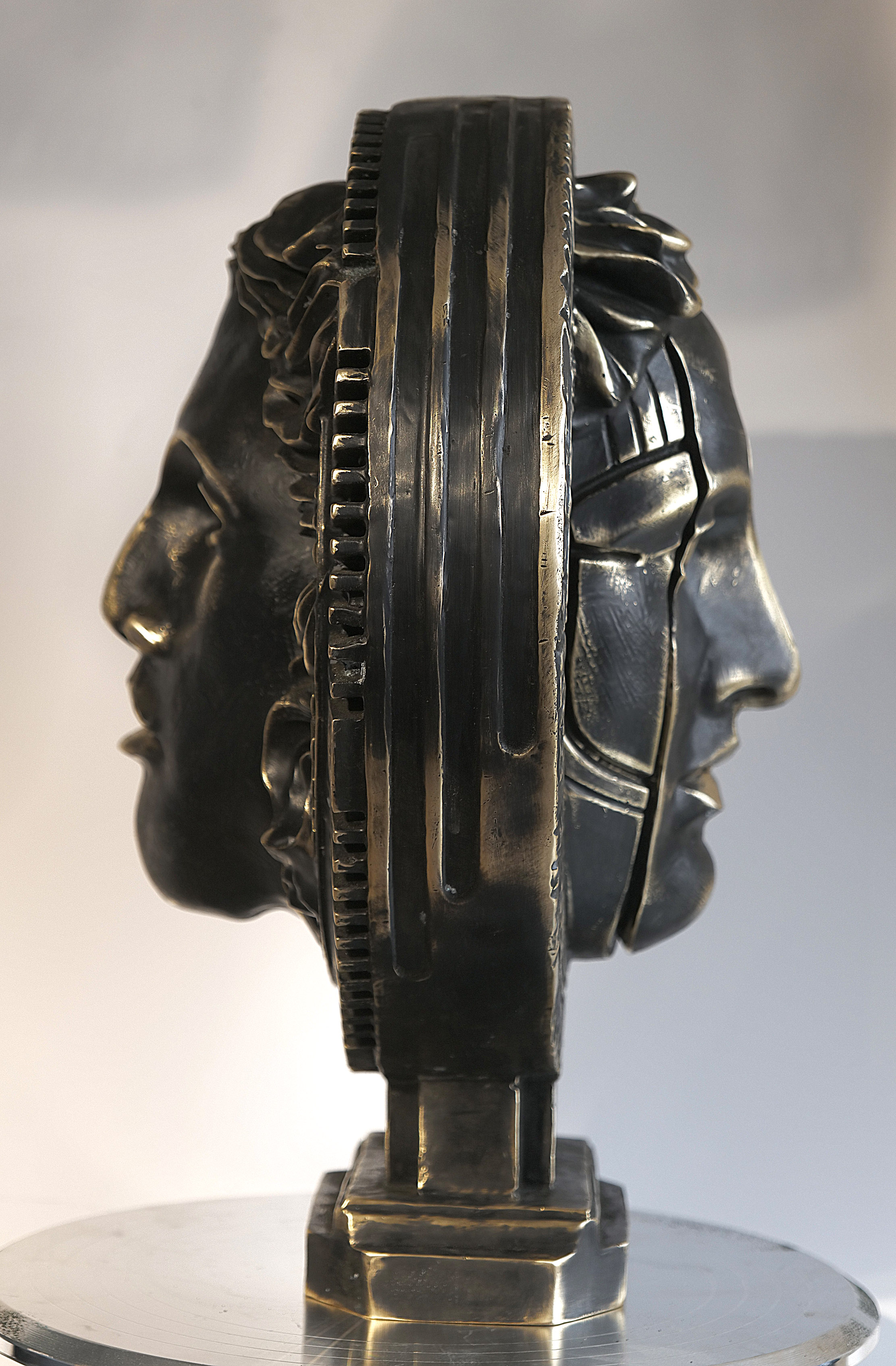 To dzieło nie tyle istnieje, co manifestuje swoją obecność z niemal arystokratyczną obojętnością wobec spojrzenia. Nie zabiega o interpretację — raczej ją warunkuje. W tej formie pobrzmiewa szczególny rodzaj ciszy: nie jest to jednak cisza braku, lecz cisza nasycenia, jakby każdy możliwy sens został już przeżyty, przetworzony i ostatecznie zamknięty w tej jednej, suwerennej powierzchni. Rzeźba zdaje się operować w przestrzeni pomiędzy pamięcią antyku a jego świadomym przekroczeniem. Nie cytuje — raczej destyluje. Nie rekonstruuje — raczej przywołuje widmo idei, w której władza, piękno i obsesja splatają się w jedną, nierozdzielną substancję. Jest w niej coś z chłodnej logiki imperium, ale i z niemal alchemicznej fascynacji przemianą — nie materii w złoto, lecz pragnienia w absolut. To obiekt, który nie daje się posiąść bez reszty. Im dłużej na niego patrzymy, tym bardziej ujawnia się jego przewrotna natura: zamiast być przedmiotem kontemplacji, staje się jej arbitrem. Odbiera widzowi komfort dystansu, wciągając go w subtelną grę dominacji i uległości — estetycznej, intelektualnej, niemal egzystencjalnej. A gdyby ktoś jednak zapragnął ująć to z odrobiną wyrafinowanego, angielskiego chłodu: posiadanie tej rzeźby nie jest oznaką bogactwa… to raczej dyskretna deklaracja, że bogactwo od dawna należy do ciebie.