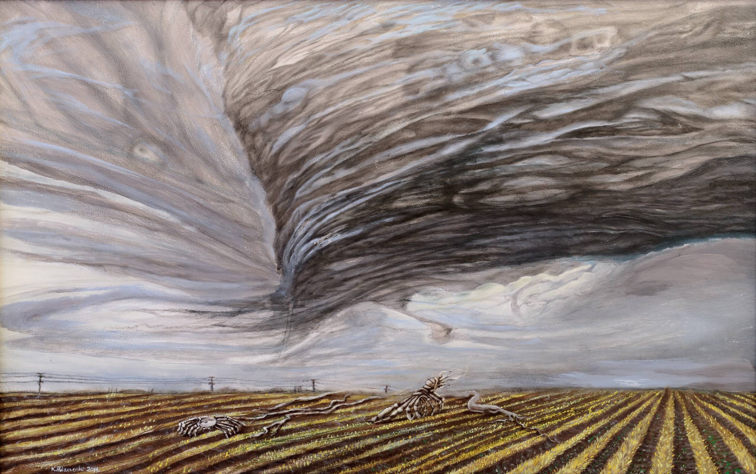 Obraz surrealistyczny autorstwa Krzysztofa Polaczenko, przedstawiający pole przed zbliżającą się burzą. "Burza" jest bogata w detale oraz precyzyjnie dopracowana przez artystę. Kupując obraz wykonany przez Krzysztofa Polaczenko, możesz liczyć na znakomitą jakość i trwałość nabytego dzieła.