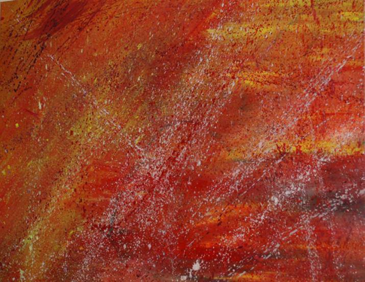 Obraz wykonany techniką action paintingu. Jest to obraz akrylowo-olejny wykonany na płótnie.