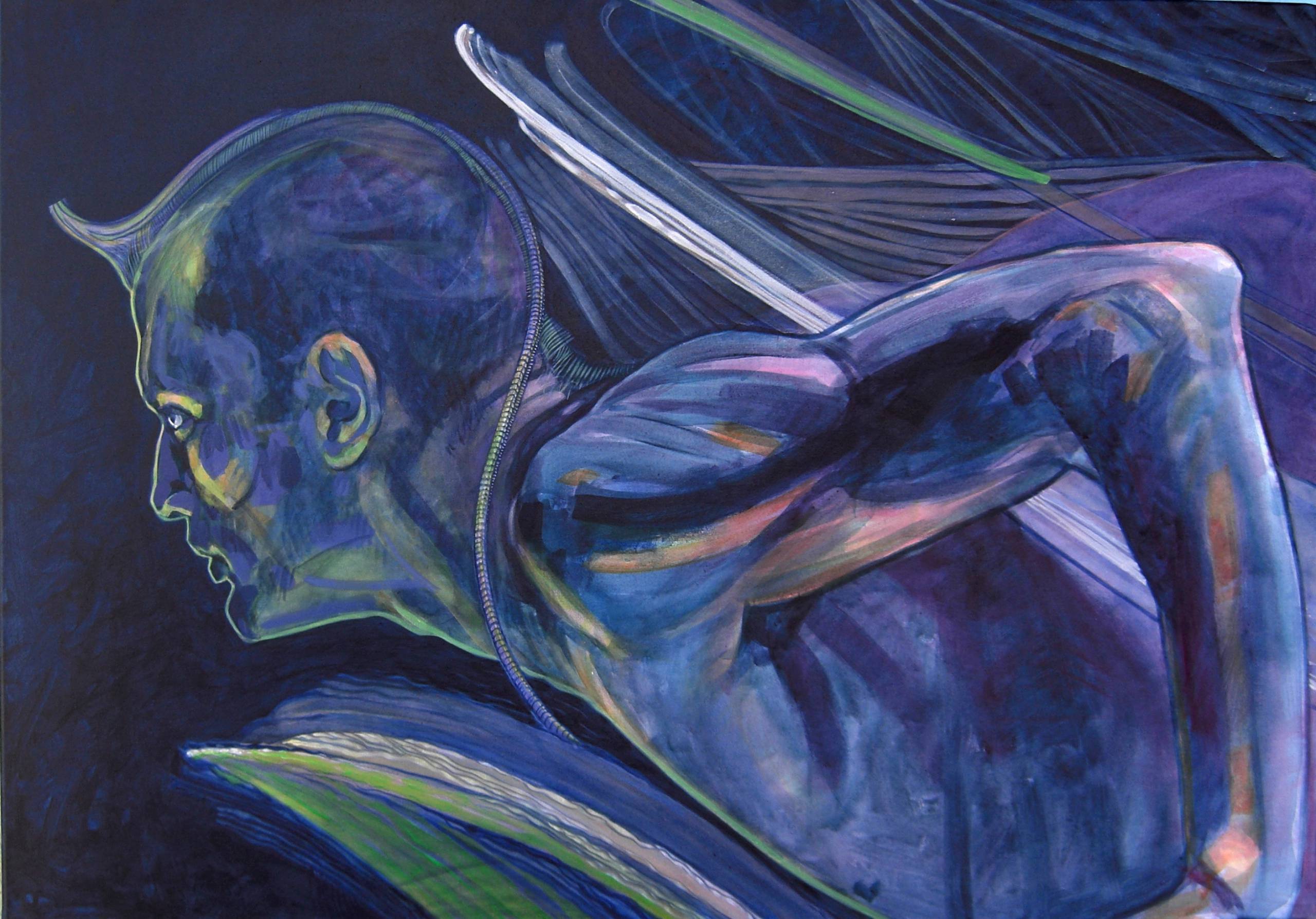 Próba oderwania się... chęć wyfrunięcia. Wyimaginowane skrzydła przytrzymują go, dają schronienie .....