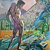 Młody mężczyzna trafił do nieba i nie "załatwił" sobie wcześniej posady. A w niebie właśnie skończyła się impreza. Koś musi tutaj też sprzątać ;) Obraz należy do cyklu "CIENKA LINIA ŻYCIA" TECHNICZNIE: Ze względu na duże rozmiary obraz jest bez krosna. Można go rolować . Jest wykończony u dołu koronką, u góry ma tunel na kołek - co stanowi niejako ramę. Można go tak eksponować, albo nabić na ramę w wyspecjalizowanym zakładzie.