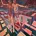 Bywa że komuś w niebie się nie spodoba. Nie jest prosto się stamtąd wyrwać. ;) Obraz należy do cyklu "CIENKA LINIA ŻYCIA" TECHNICZNIE: Ze względu na duże rozmiary obraz jest bez krosna. Można go rolować . Jest wykończony u dołu koronką, u góry ma tunel na kołek - co stanowi niejako ramę. Można go tak eksponować, albo nabić na ramę w wyspecjalizowanym zakładzie.