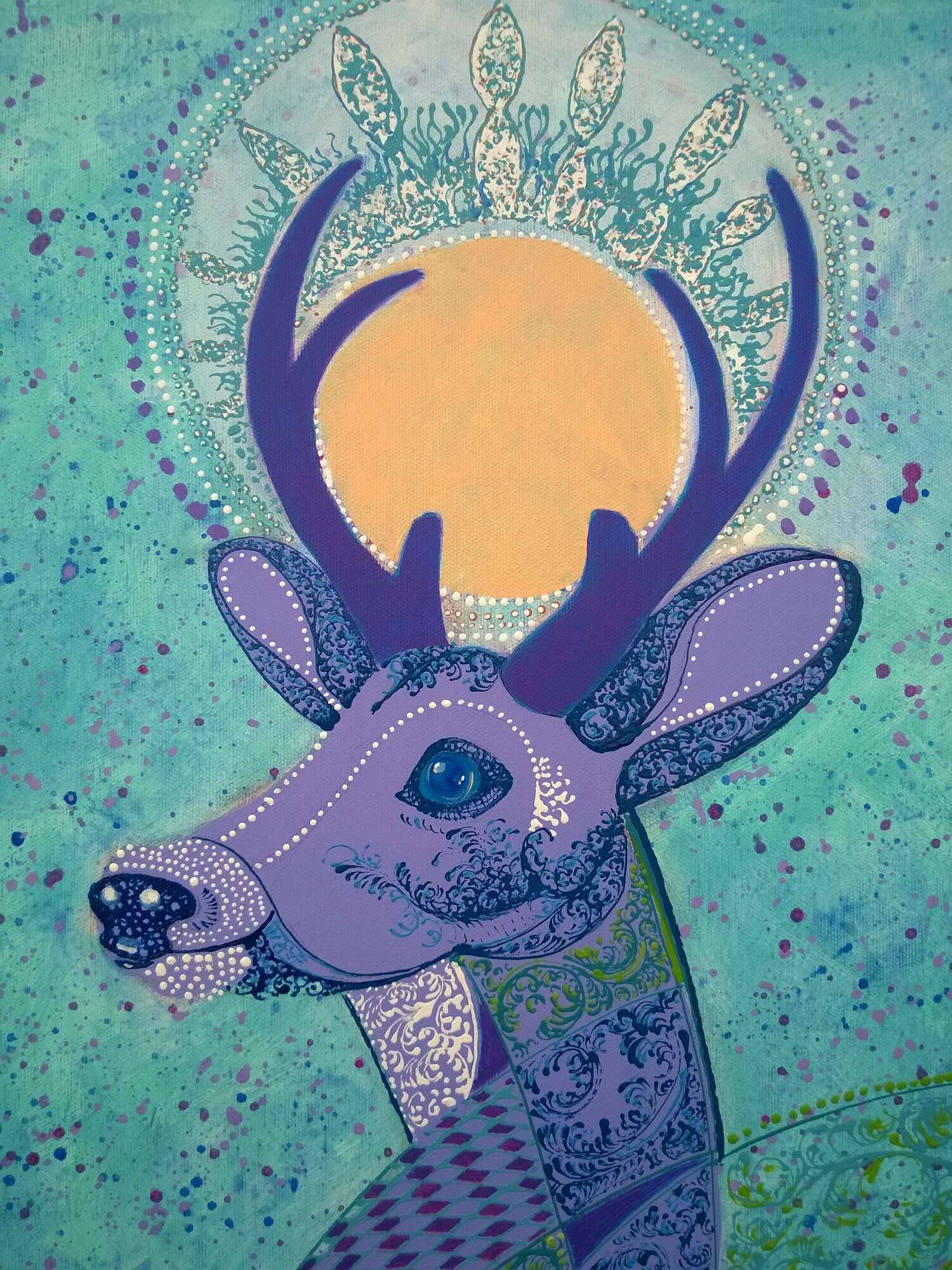 Krzysztof Trzaska, obraz Fiołkowy jeleń, akryl/płótno, 70x50 cm
