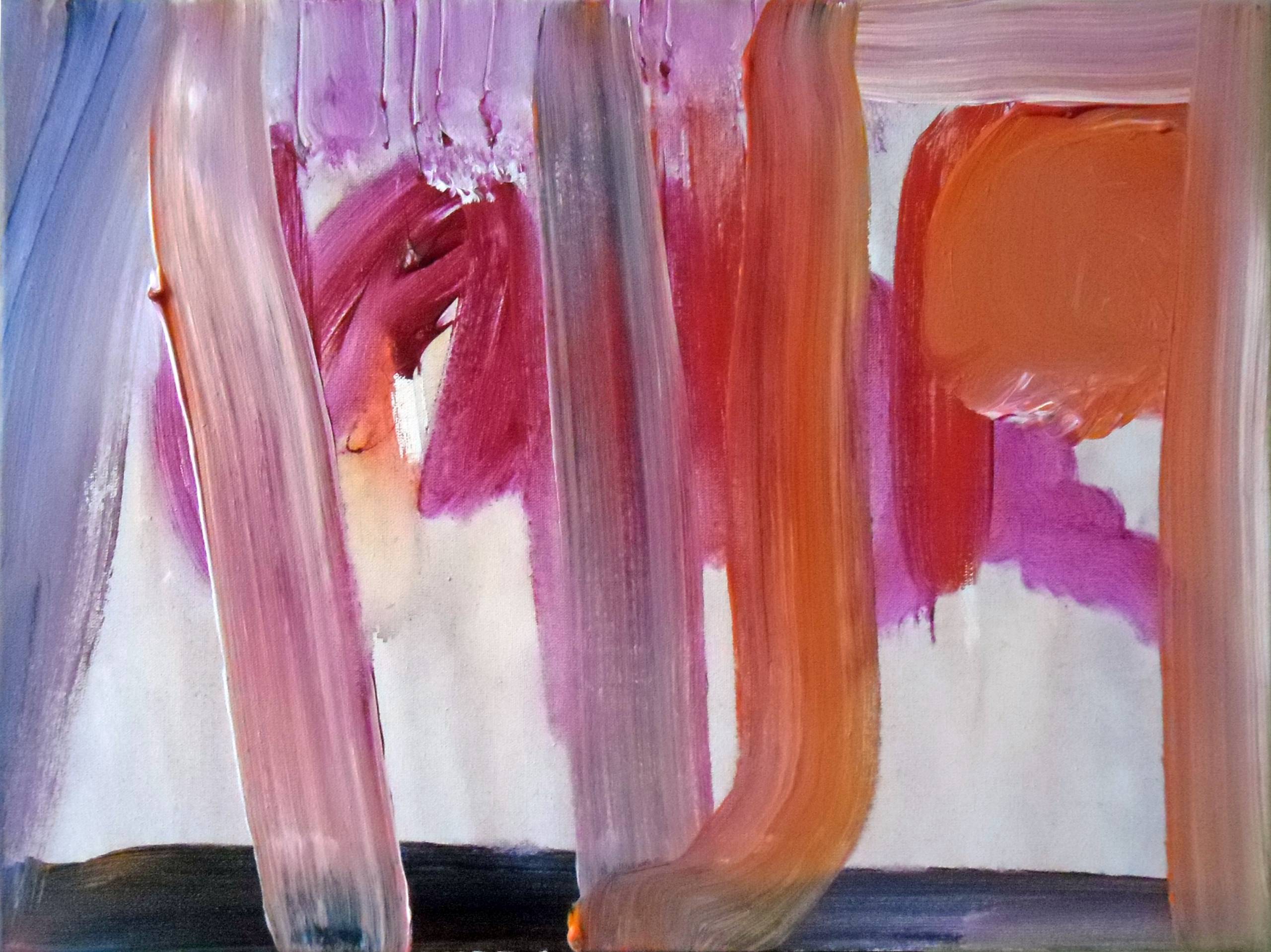 Na tym obrazie dominują ciepłe odcienie, które tańczą w abstrakcyjnej kompozycji plam i pociągnięć pędzlem. Fiolet, róż i pomarańcz przeważają, tworząc dynamiczne i energetyczne wrażenie. Kolory te przenikają się nawzajem, jakby artysta postanowił uchwycić chwilę pełną emocji i ekspresji. Pociągnięcia pędzla są szerokie, śmiałe, a farba zdaje się płynąć swobodnie, niczym fala oceaniczna. Atmosfera jest zarazem żywa i refleksyjna. To trochę jak te dni, gdy słońce zachodzi, a niebo maluje się całą paletą barw, które wydają się jednocześnie chaotyczne i harmonijne. Artysta stosuje technikę impastową, co dodaje obrazu tekstury i głębi. Dzieło może wywołać różnorodne emocje u oglądającego. Może przypominać ciepłe spotkania przy zachodzie słońca albo, wręcz przeciwnie, burzę emocji. Jest w nim coś surowego, co sprawia, że człowiek czuje się częścią czegoś większego. Dziecko powiedziałoby pewnie: "to wygląda jak dużo kolorowych makaronów!", co zaskakuje trafnością skojarzenia. Styl obrazu przypomina action painting, gdzie na pierwszym miejscu jest emocja i spontaniczność. Wow, to jakby artysta próbował uchwycić chwilę w ruchu, zamknąć energię w zamkniętej przestrzeni płótna. I wiesz co, to działa. Czy o to chodziło artyście? Może tak, może nie, ale na pewno porusza.
