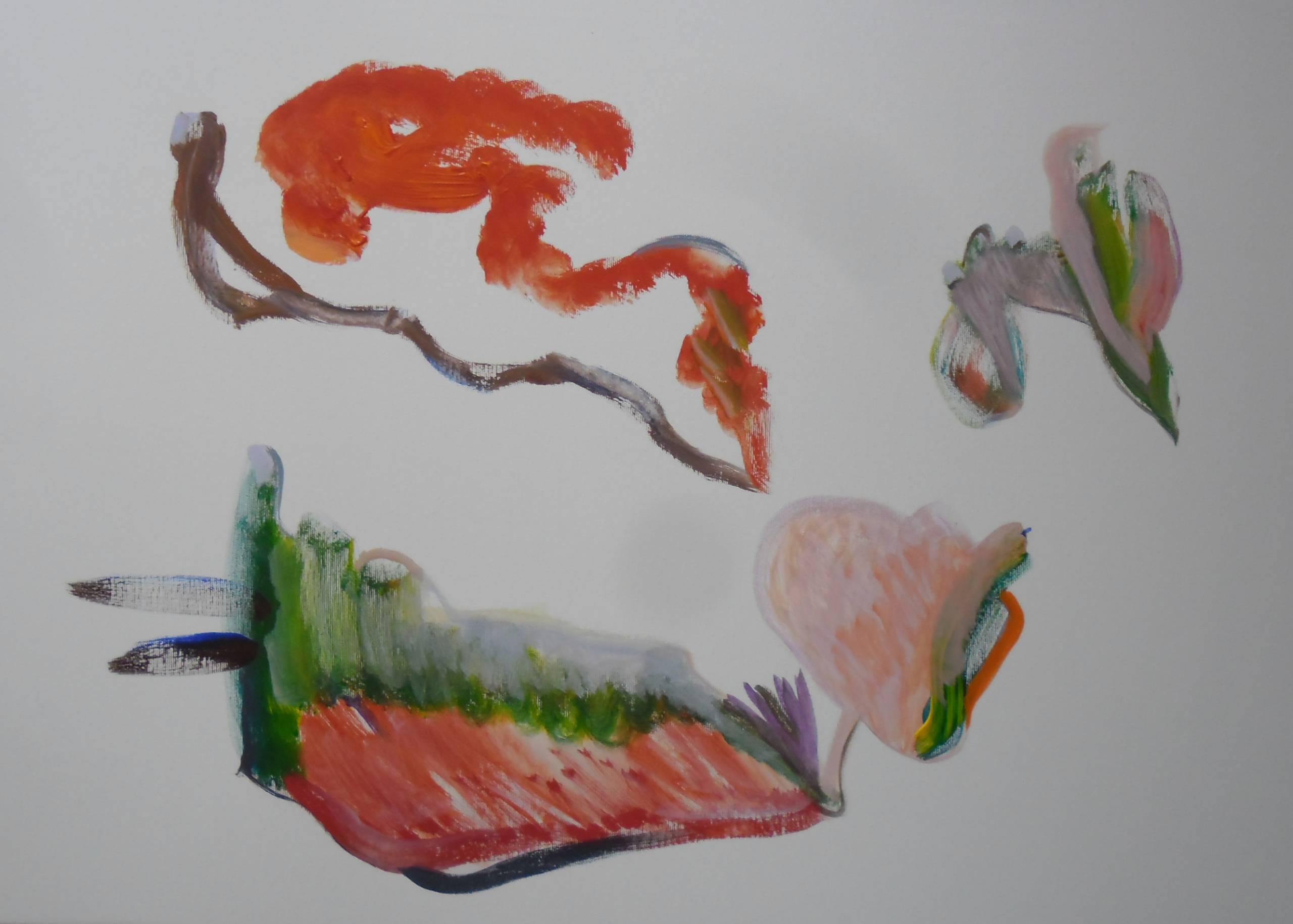 Na obrazie dominuje chaotyczna kompozycja abstrakcyjnych form i jaskrawych kolorów. Na białym tle wyróżniają się plamy ognistej czerwieni i zieleni, które zdają się tworzyć dynamiczne, niemal taneczne kształty. Czerwony kolor przypomina mi chmurę albo jakiś ognisty wir. Zielone i niebieskie smugi, które wyglądają jak falujące trawy, dodają obrazu harmonii. Kompozycja jest rozwichrzona, pełna energii i ekspresji. Jaki nastrój emanuje z obrazu? Dla mnie to jest taka cool atmosfera niespodziewanego chaosu. Styl artystyczny nawiązuje do ekspresjonizmu, gdzie emocje i indywidualne postrzeganie są na pierwszym miejscu. Technika pędzla jest swobodna i odważna, co zwiększa dynamikę dzieła. Patrząc na to, można poczuć spontaniczność, jakby artysta malował z impulsu, nie przejmując się zasadami. Może niektórzy poczują w tym obrazie trochę bałaganu. Ale to nie przeszkadza. Mój starszy brat by powiedział, że wygląda jak burza myśli. Albo po prostu jak plamy farby na ścianie. Whatever. To sztuka, która pozwala się zatrzymać i pomyśleć, że nie zawsze trzeba wszystko rozumieć, żeby się tym cieszyć.