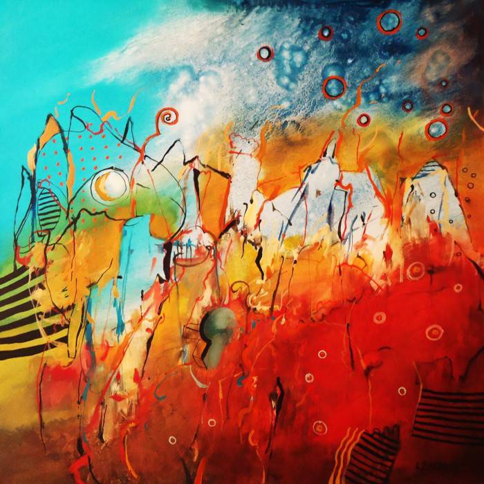 Ten obraz to prawdziwa eksplozja kolorów i form, które niemalże hipnotyzują. Dominujący turkus błękitu harmonizuje z żywymi odcieniami pomarańczowego i czerwieni. Tworzą one chaotyczną, a jednak przemyślaną kompozycję. Kształty są abstrakcyjne, trochę jak z dziecięcej wyobraźni. W jednym miejscu płomienie, w innych miejsca prawie jak pędzle porwanych linii. Atmosfera tego dzieła to czysty dynamizm, energia, która aż kipi. Widać tu odwagę artysty, który nie boi się mieszać technik i stylów. Styl jest nowoczesny, z wyczuwalnym wpływem surrealizmu. Technika? Czysta improwizacja, jakby malarz przelał swoje emocje prosto na płótno. Czuję radość, ale i lekkie zaniepokojenie. Patrząc na to, mam wrażenie jakbym odkrywał jakiś sekret. Zastanawiam się, co artysta miał na myśli. To takie our little mystery. Wiesz co? To wygląda jak dżungla, gdzie wszystko jest możliwe! Podsumowując, obraz ten to kalejdoskop emocji. Chaos, ale taki, który zaprasza do refleksji i snucia własnych interpretacji.