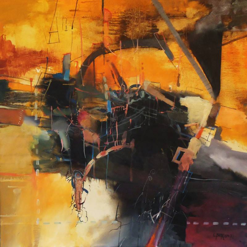Obraz przyciąga wzrok paletą intensywnych ciepłych kolorów, a dominujące pomarańcze i żółcie przeplatają się z głębokimi odcieniami czerni i brązu. Kształty na płótnie są abstrakcyjne i dynamiczne, przypominające wirujący chaos, który jednak porządkuje wszystko w harmonizującą całość. Kompozycja sugeruje ruch, jakby cała scena unosiła się w powietrzu. Nastrój obrazu jest pełen energii i tajemnicy, z nutą niepokoju, jak przygoda w nieznane. Styl artysty przypomina nieco abstrakcyjny ekspresjonizm, gdzie swoboda gestu i intuicyjne linie tworzą magiczną atmosferę. To dzieło może wywołać w odbiorcy uczucie zdumienia i zaintrygowania, a także prowokuje do osobistych refleksji. Czuję, jakby artysta celowo bawił się konwencjami, tworząc coś bardzo "in your face", wpływając na nasze zmysły. Mieszając formalne podejście z potocznymi elementami, obraz nabiera życia. To jak patrzenie w kalejdoskop duszy. "Mam ochotę tam pójść i się pobawić," powiedziałoby dziecko zachwycone mnogością barw. Emocje na płótnie zdają się tańczyć, porywając obserwatora w niekończącą się podróż przez wyobraźnię.