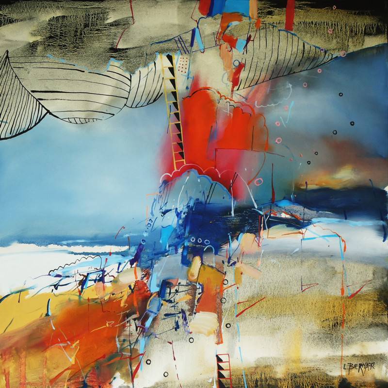 Na tym obrazie dominują intensywne kolory, które od razu przyciągają wzrok. Różne odcienie niebieskiego mieszają się z ognistą czerwienią i złocistym żółtym, tworząc dynamiczną kompozycję. Linie i kształty są nieco chaotyczne, jakby artysta chciał uchwycić moment spontaniczności. Z jednej strony mamy niebo pełne tajemniczych, niewyraźnych linii, z drugiej ziemię pełną energii. Obraz emanuje atmosferą niepokoju, ale też jakiejś nieokreślonej nadziei. Styl przypomina mi trochę surrealizm, ale z nutką abstrakcji. Wrażenie nieskończoności sprawia, że myślę o "infinite possibilities". Śmiało mogę powiedzieć, że taki obraz budzi wiele emocji. Może spowodować zadumę, skłonić do refleksji nad sensem życia. A może dziecko powiedziałoby: "To wygląda jak wybuch tęczy"! Technika użyta przez artystę to prawdopodobnie mieszanka kilku stylów. Może akryl-nie jestem pewien. Faktura jest ciekawa, daje wrażenie głębi. Obraz wywołuje we mnie uczucie zaskoczenia i lekkiego niepokoju. Ale to chyba dobrze, bo sztuka powinna poruszać i prowokować. Ciekawe, co artysta chciał przekazać.