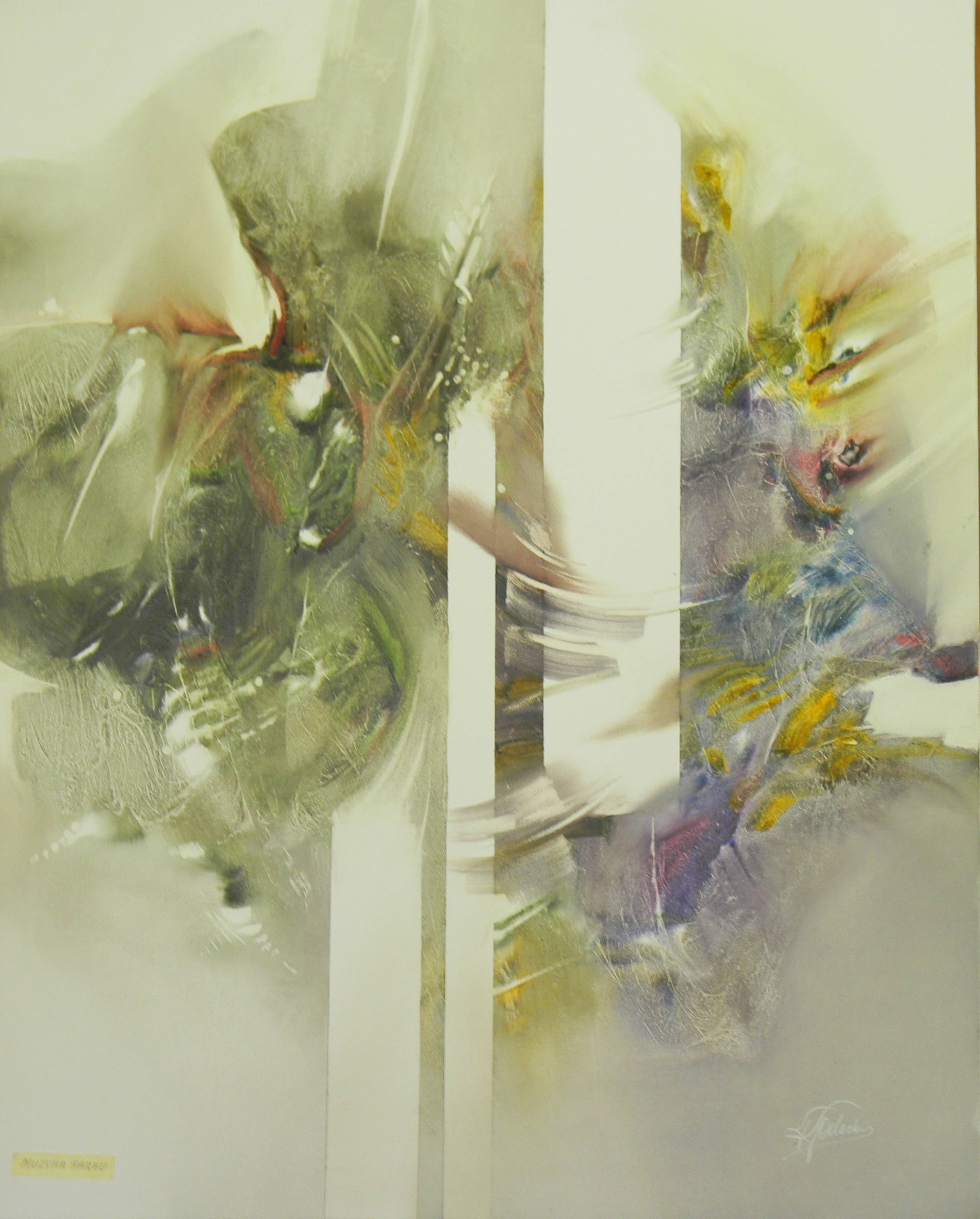 Obraz olejny na płótnie, inspirowany nuzyką wiolinistów w parku.