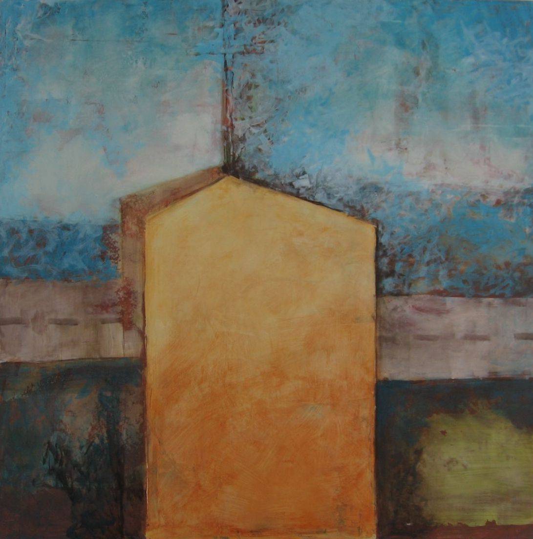 Na obrazie dominuje złocisty prostokąt przypominający zarys budynku, który wyróżnia się na tle błękitnego nieba. Kolorystyka to gra kontrastów. Ciepły żółty zderza się z chłodnym niebieskim. Jest tu coś prostego, ale i intrygującego. Może to jednak nie miejsce, tylko magiczna chwila? Brush strokes są wyraźne, jakby artysta dążył do uchwycenia spontaniczności chwili. Technika przypomina akryl lub olej, pełen tekstur, z widocznymi pociągnięciami pędzla. Całość ma w sobie coś z abstrakcji i minimalizmu. Obraz emanuje spokojem, ale i zagadkowością. Co za tym budynkiem się kryje? Może jakieś tajemne historie? Może to miejscówka, którą każdy zna z dzieciństwa. Dzieciak by powiedział: „To jak domek z piasku na plaży!”. Taki mini point of view młodego odkrywcy. Patrząc dłużej, to jakby czas stanął w miejscu. Nastrój może wprowadzać nostalgiczne wspomnienia, choć dla kogoś innego będzie to tylko studium formy i koloru. Ciekawi mnie, jakie emocje wywoła w Tobie ten obraz? Ostatecznie, to co czujemy jest prywatnym odbiciem tego, co widzimy. Fascynujące, prawda?