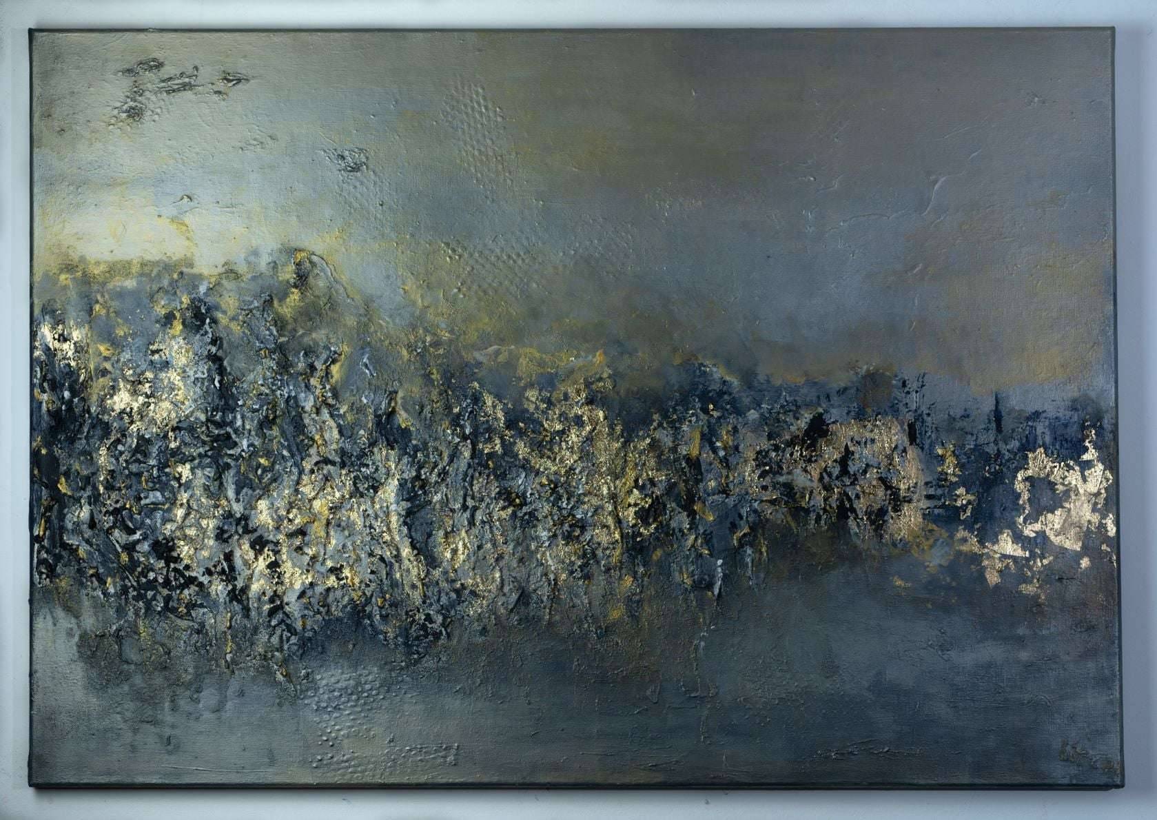 obraz strukturalny z użyciem płatków złota maki marmurowej gessa,współczesny decor
