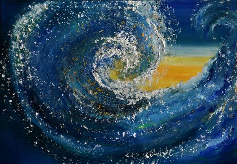obraz ukazujący falę przy użyciu maki marmurowej i gessa oraz farb akrylowych lekko strukturalny bardzo efektowny