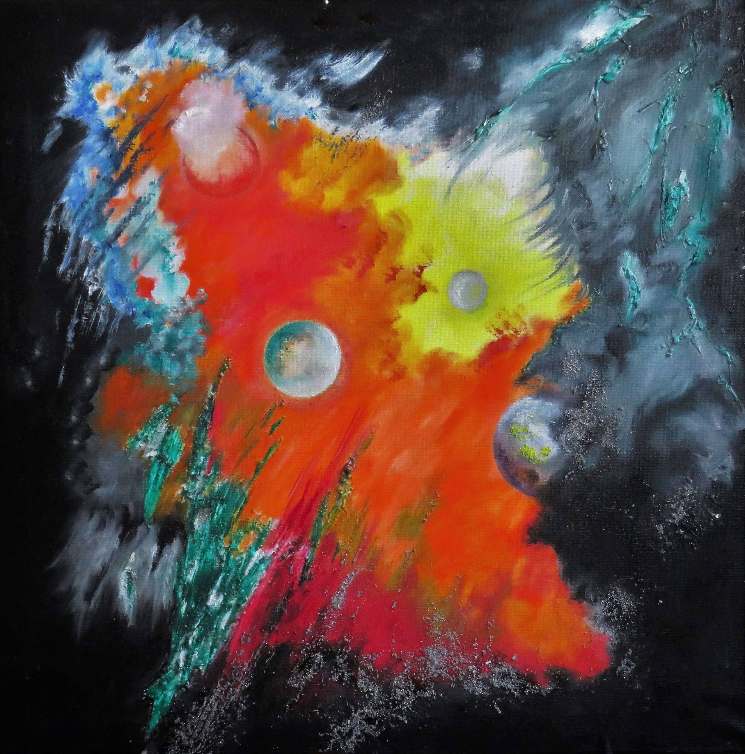 Pulsująca energią "dziura "w kosmosie.olej na płótnie 50x50 cm. technika własna