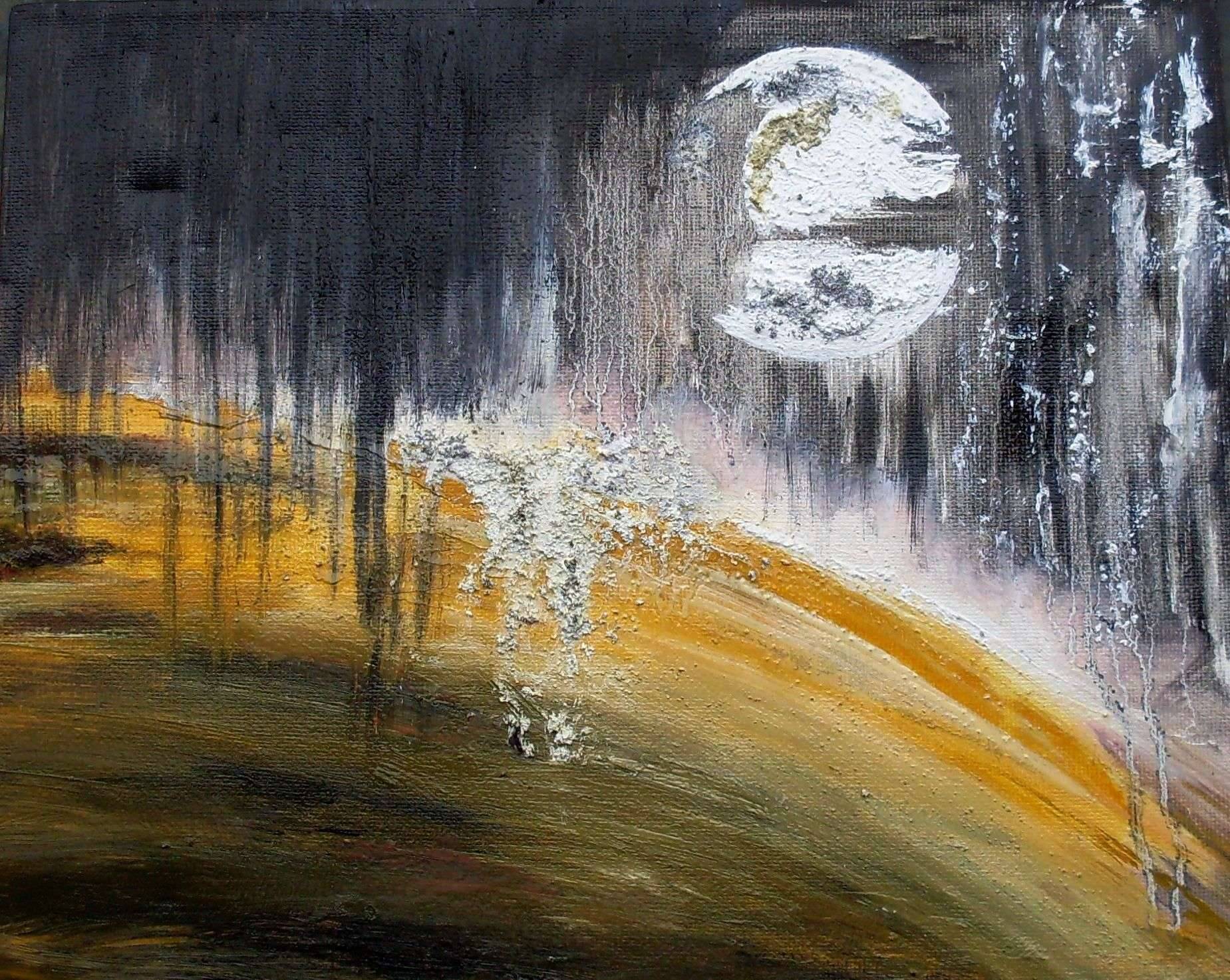 TRAKT olej na płótnie 24x30x4 cm,technika własna