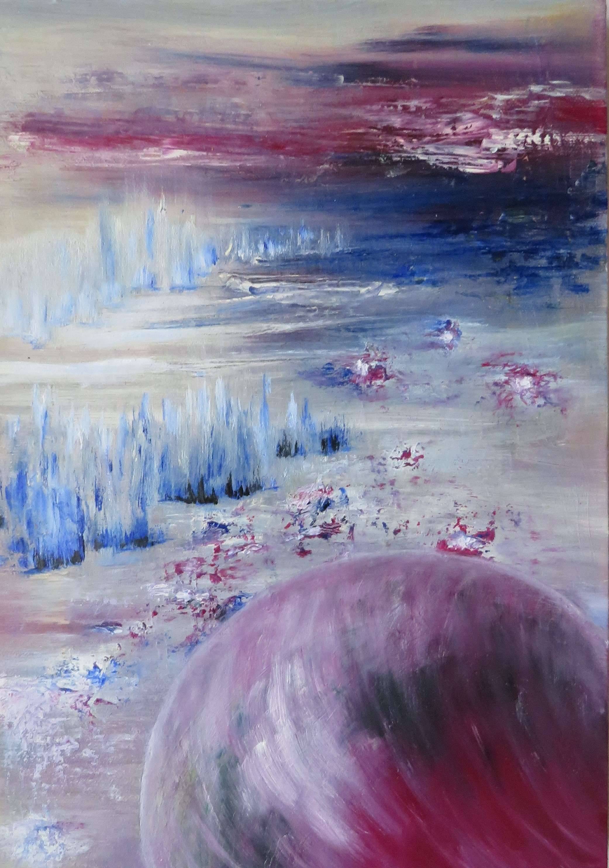 FIOLETOWY ŚWIT - olej na płótnie 35 x 25 x 4 cm