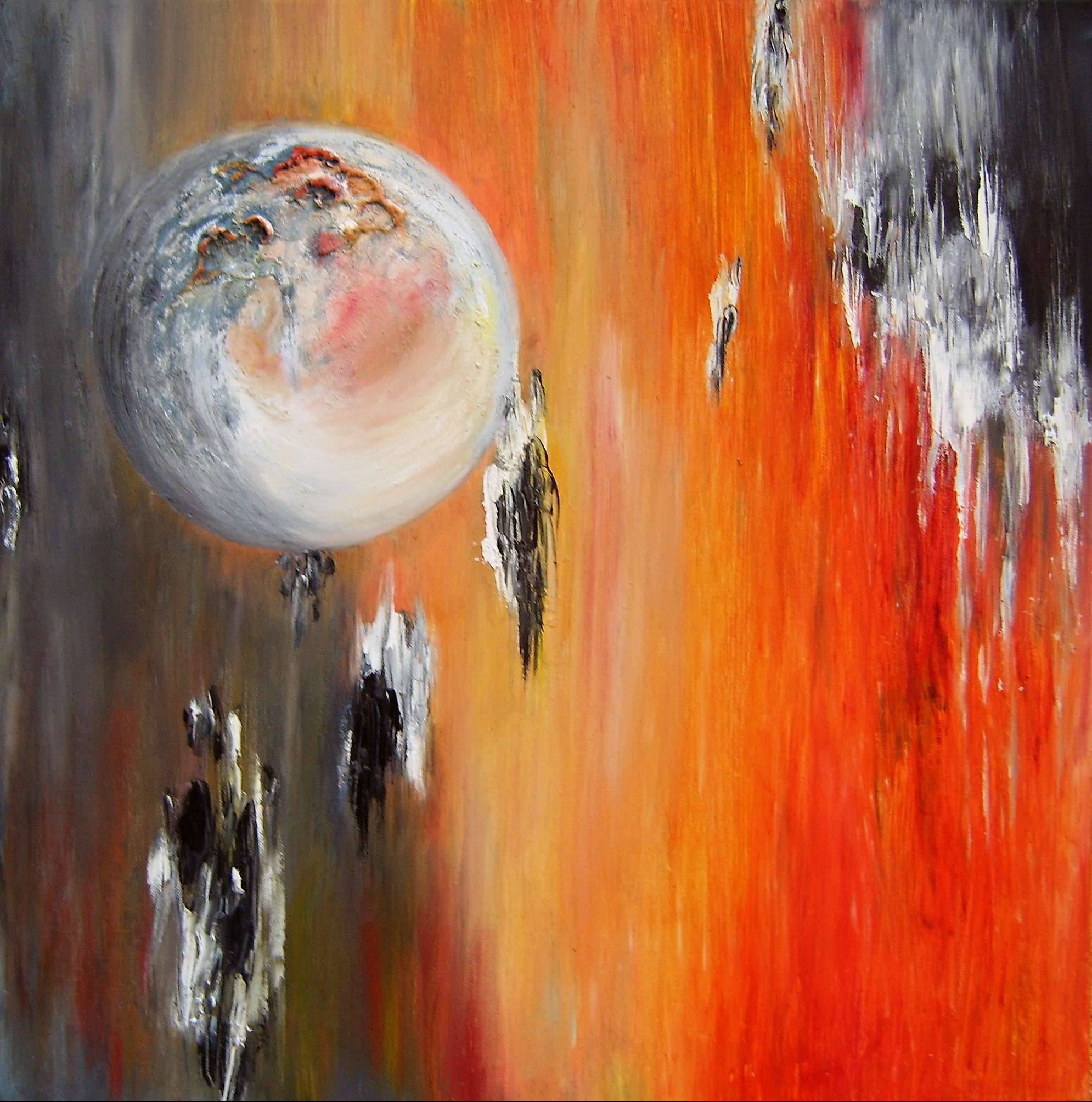 Oderwanie - w kosmicznej czasoprzestrzeni ten stan ma inny wymiar. Prezentacja obrazu miała miejsce w Rzymie podczas wystawy"Artists in the creation" olej na płótnie 60x60 cm
