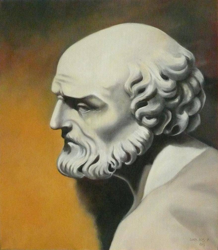 Szlachetne rysy starego człowieka pochodzą z rzeźby "Adoracji dzieciątka" Ercole Ferraty.
