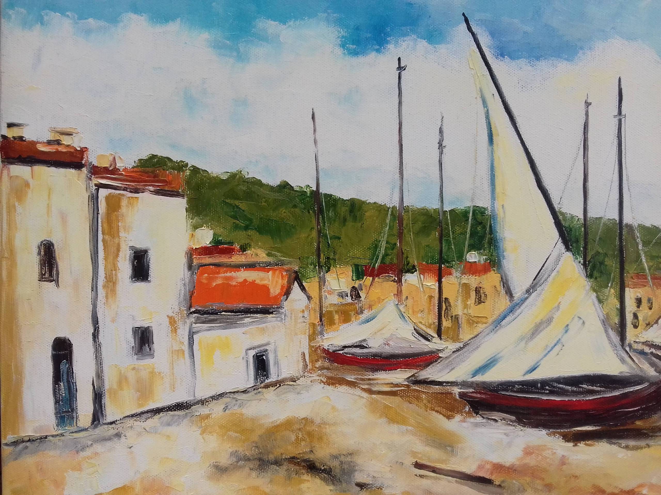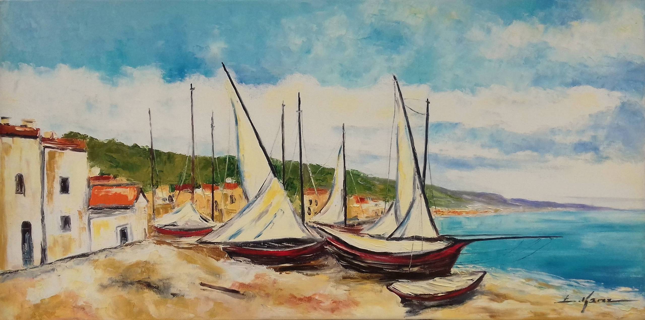 Łodzie na włoskiej Rivierze w Cogoleto.