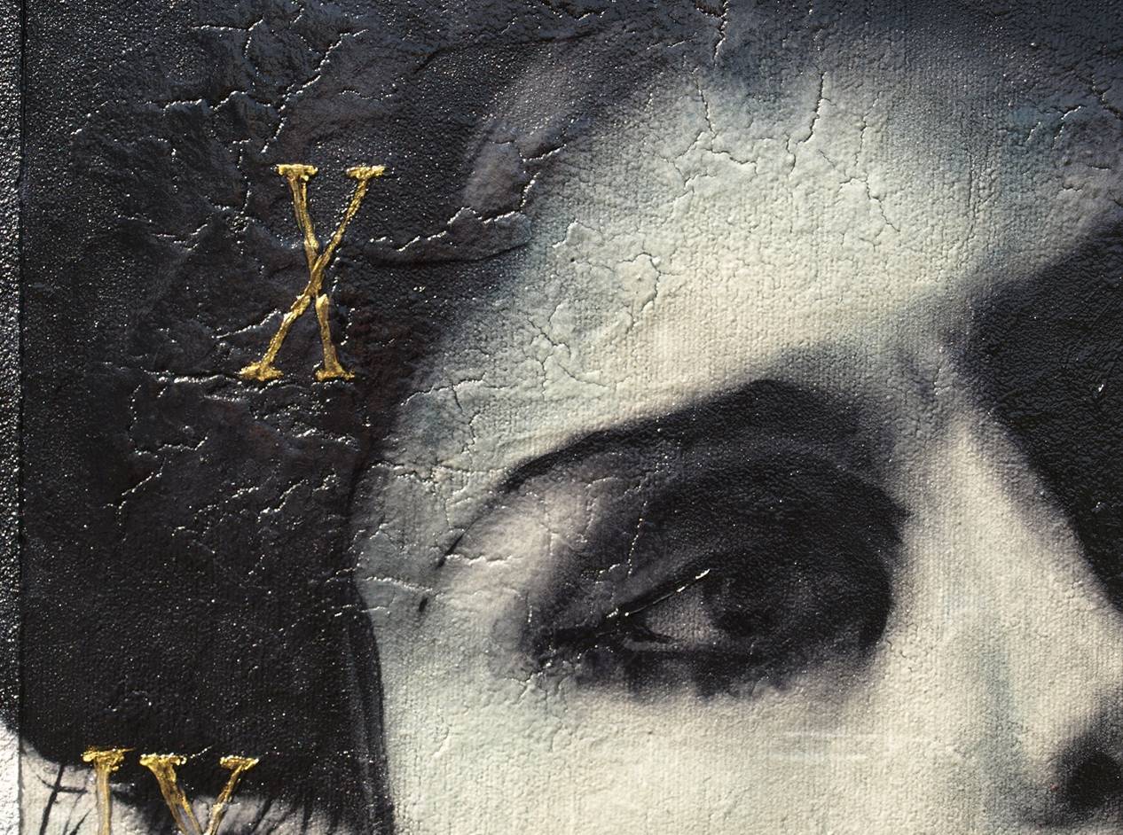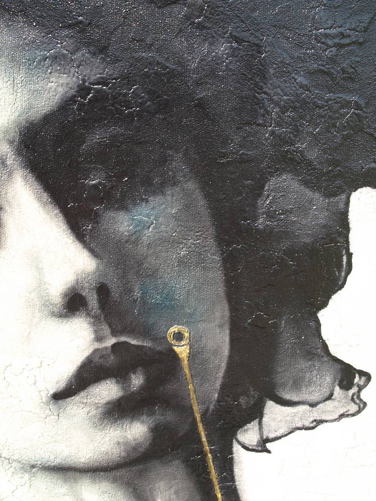 Obraz emanuje tajemniczością i melancholią. Patrzymy na portret kobiety o wielkich, smutnych oczach, jakby zaklętej w czasie. Kolory są stonowane, czarno-białe odcienie tworzą dramatyczny kontrast. Zegarek z rzymskimi cyframi wtapia się w kompozycję, jakby czas stanął w miejscu. Tło chropowate, teksturowane, nadaje dziełu surowości. Włosy ciemne jak noc, zlewają się z cieniem czasomierza. Całość tworzy atmosferę intrygi, gdzie czas i emocje są splecione w jedność. Artysta zastosował technikę kolażu, łącząc realistyczny portret z abstrakcyjnymi elementami zegara. Efekt jest zarówno hipnotyzujący, jak i niepokojący. Styl jest nowoczesny, ale z nutą klasycyzmu w detalach. Czujemy się, jakbyśmy zaglądali do duszy, która utknęła w chwilach przeszłości. To wszystko sprawia, że obraz prowokuje do refleksji nad ulotnością chwili i naszym postrzeganiem czasu. A wiesz co? Wygląda jak by ktoś przysłonił słońce, aby życie toczyło się spokojniej. Tak chyba mógłby to opisać mały artysta, patrząc na obraz z intrygą. Poczułam się trochę przytłoczona, ale jednocześnie fascinated. Obraz ma w sobie something very mysterious. Atmosfera jest prawie namacalna, jak cisza przed burzą. Trudno oderwać wzrok, prawda?