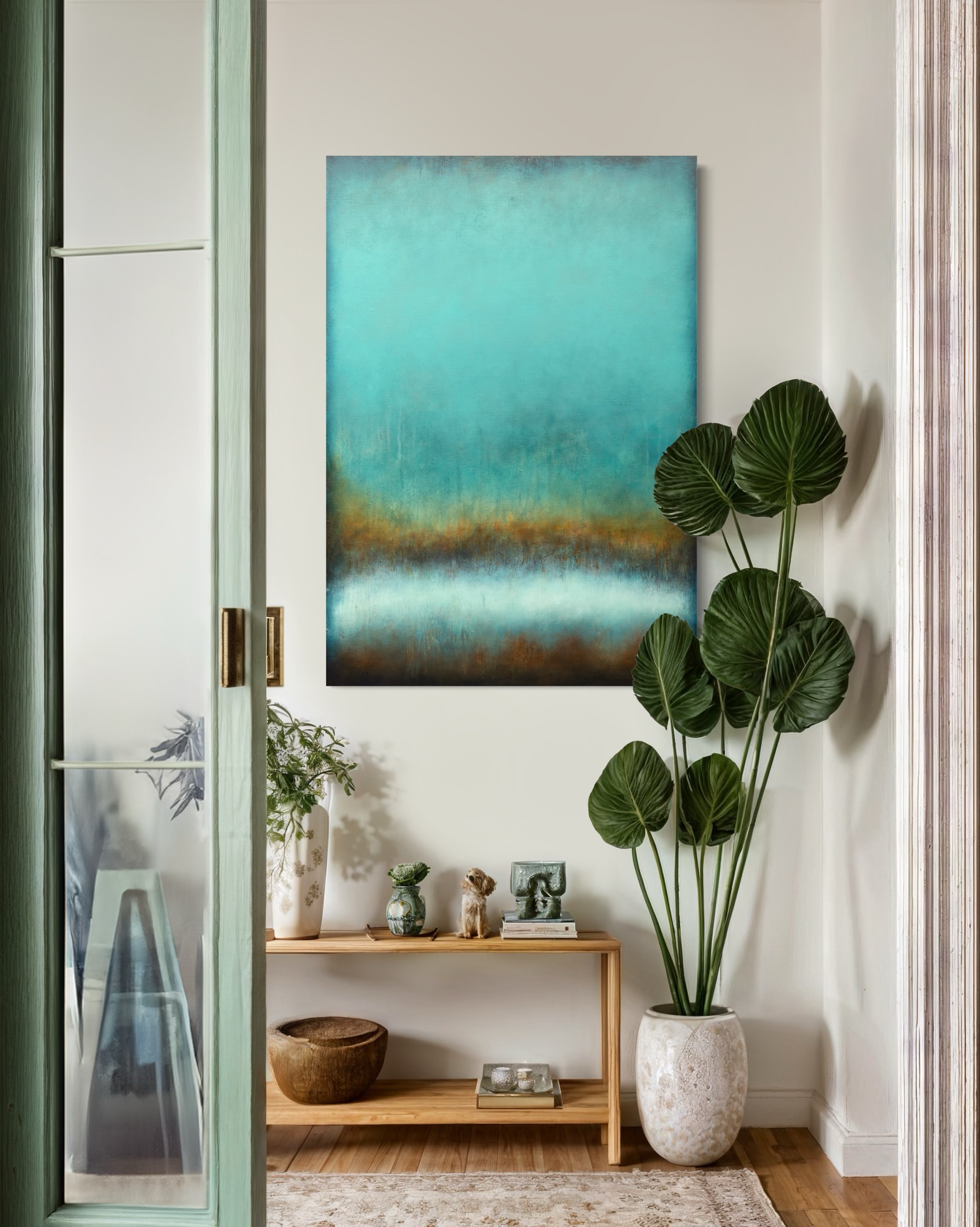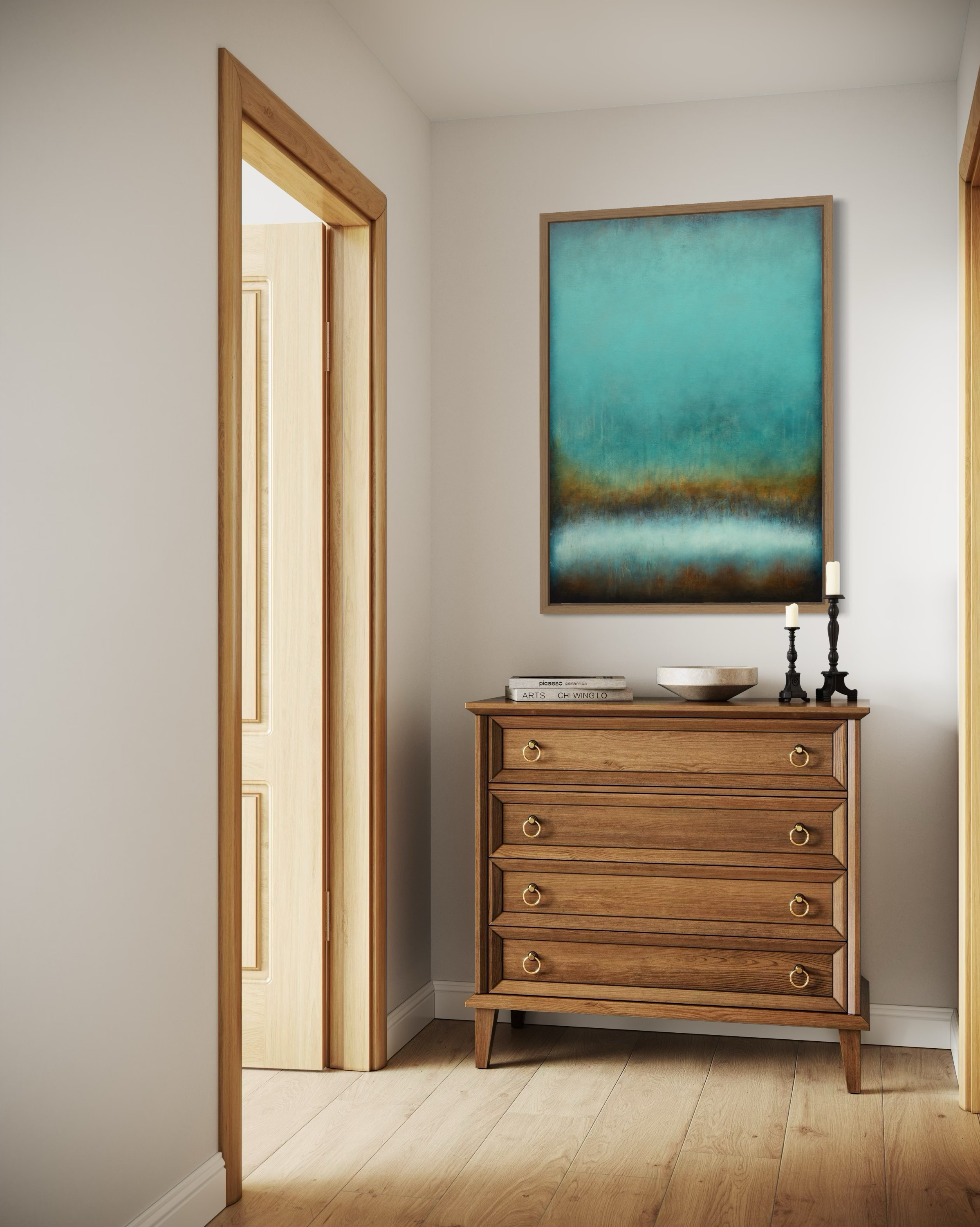"Where Do We Go", akryl na płótnie lnianym, boki - surowy len. Sygnowany z tyłu. Brak werniksu. Gotowy do zawieszenia. Mosiężna płytka z danymi autora z boku obrazu. Obrazy Łukasza Olka zapraszają do doświadczania świata widzianego jego oczami świata, w którym każdy krajobraz jest osobistym studium wspomnień, emocji i przemijającego piękna otoczenia. Urodzony w Warszawie w 1982 roku, swoje obrazy wielokrotnie prezentował na wystawach w prestiżowych galeriach na całym świecie. Reprezentowany jest przez galerie w Polsce, Stanach Zjednoczonych, Francji, Japonii, Korei i Australii, co odzwierciedla jego rosnące międzynarodowe uznanie. Artysta regularnie bierze również udział w targach sztuki, m.in. w Londynie, Nowym Jorku, Amsterdamie, Warszawie i Paryżu. Jego dzieła znalazły dotychczas kilkuset nabywców z całego świata. Prace Olka to synteza fragmentów krajobrazu redukująca je do ich elementarnych form koloru, światła i faktury. Jego podejście do malarstwa jest głęboko osobiste, uchwytujące nie tylko esencję wizualnego świata, ale także intymne uczucia samego artysty. Jego prace to introspektywna podróż, żywe wspomnienia rozciągnięte na płótnie, a każdy tytuł jest hołdem muzyki, które towarzyszyła mu w procesie twórczym. Ta synestetyczna interakcja koloru, dźwięku i wspomnień nadaje jego pracom niezwykłą zmysłowość i bezpośredniość Nieustanna, konsekwentna eksploracja fragmentarycznego krajobrazu zaprasza nas do świata, w którym każdy obraz jest wszechświatem samym w sobie.