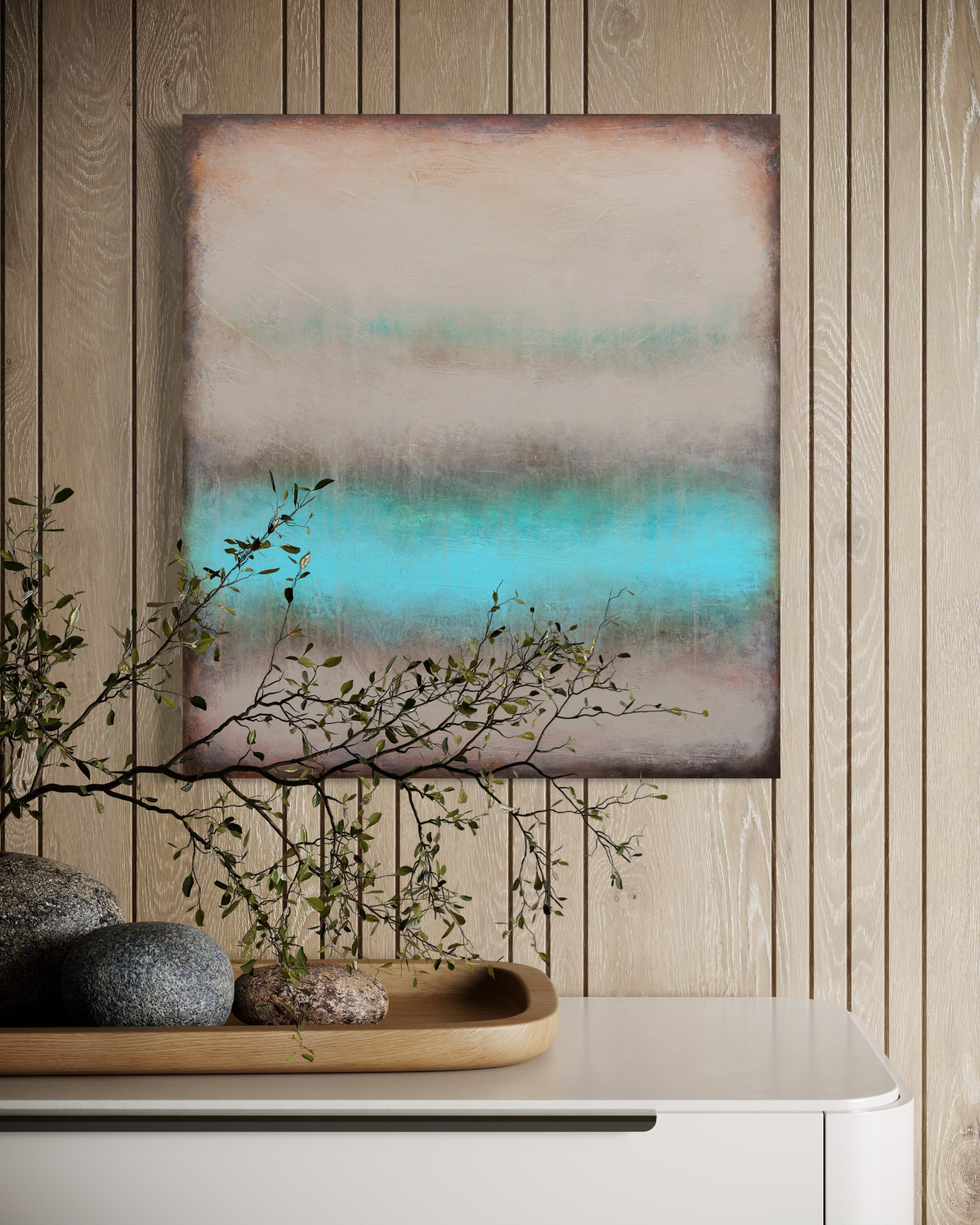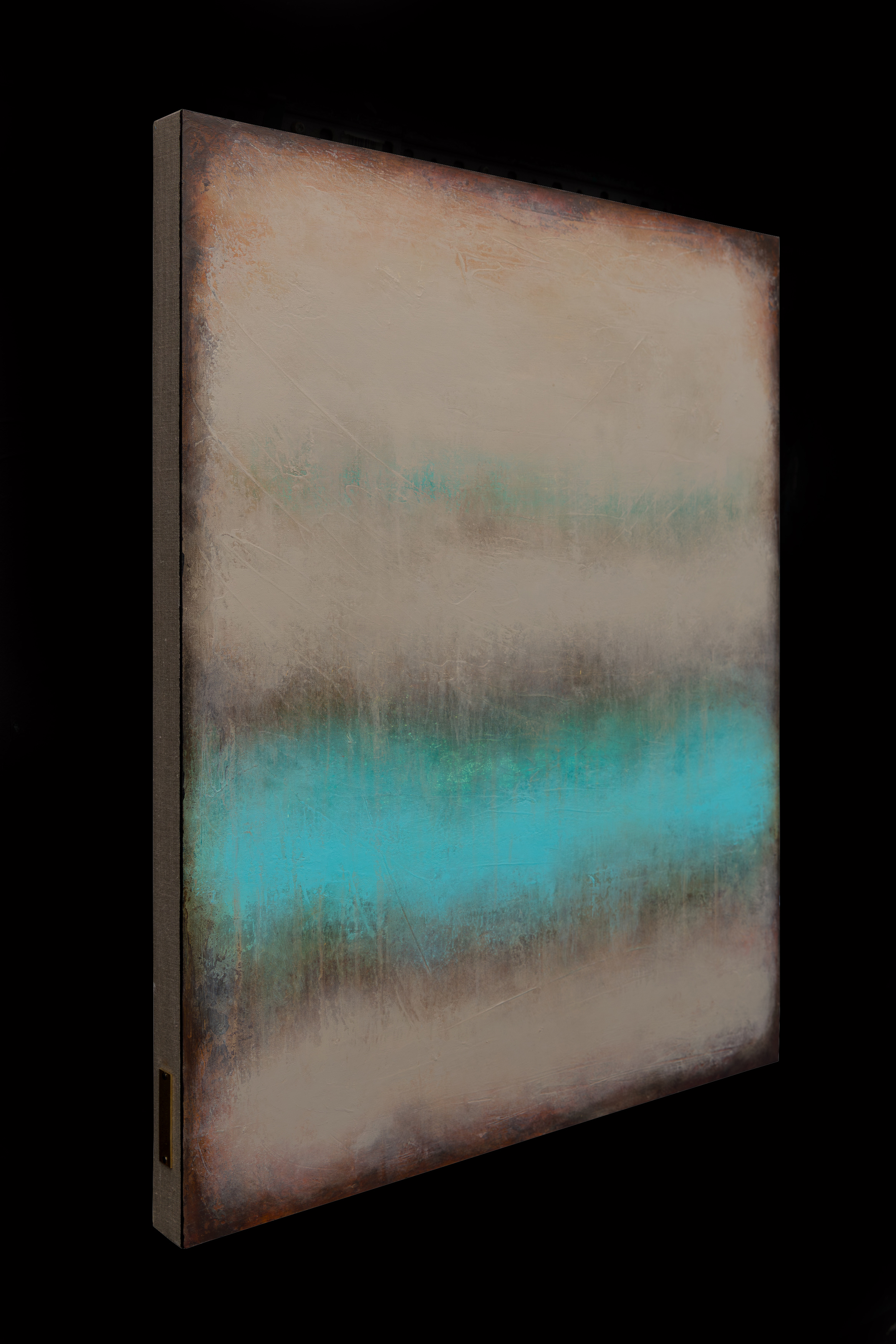 "Into Your Eyes", akryl na płótnie lnianym 3D, boki - surowy len. Oprawiony - drewniany american box. Sygnowany z tyłu. Gotowy do zawieszenia. Mosiężna płytka z danymi autora z boku obrazu. Obrazy Łukasza Olka zapraszają do doświadczania świata widzianego jego oczami świata, w którym każdy krajobraz jest osobistym studium wspomnień, emocji i przemijającego piękna otoczenia. Urodzony w Warszawie w 1982 roku, swoje obrazy wielokrotnie prezentował na wystawach w prestiżowych galeriach na całym świecie. Reprezentowany jest przez galerie w Polsce, Stanach Zjednoczonych, Francji, Japonii, Korei i Australii, co odzwierciedla jego rosnące międzynarodowe uznanie. Artysta regularnie bierze również udział w targach sztuki, m.in. w Londynie, Nowym Jorku, Amsterdamie, Warszawie i Paryżu. Jego dzieła znalazły dotychczas kilkuset nabywców z całego świata. Prace Olka to synteza fragmentów krajobrazu redukująca je do ich elementarnych form koloru, światła i faktury. Jego podejście do malarstwa jest głęboko osobiste, uchwytujące nie tylko esencję wizualnego świata, ale także intymne uczucia samego artysty. Jego prace to introspektywna podróż, żywe wspomnienia rozciągnięte na płótnie, a każdy tytuł jest hołdem muzyki, które towarzyszyła mu w procesie twórczym. Ta synestetyczna interakcja koloru, dźwięku i wspomnień nadaje jego pracom niezwykłą zmysłowość i bezpośredniość Nieustanna, konsekwentna eksploracja fragmentarycznego krajobrazu zaprasza nas do świata, w którym każdy obraz jest wszechświatem samym w sobie.