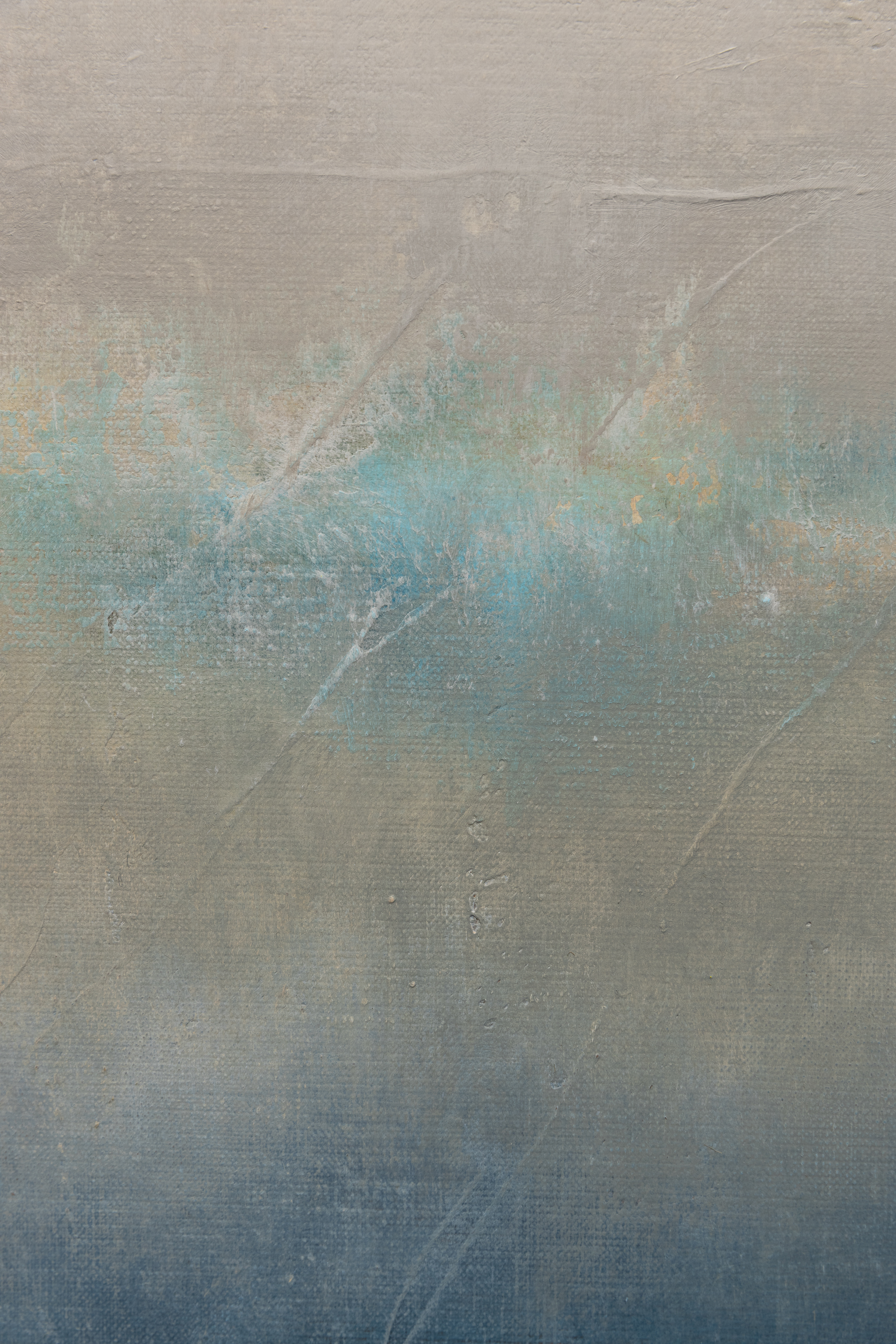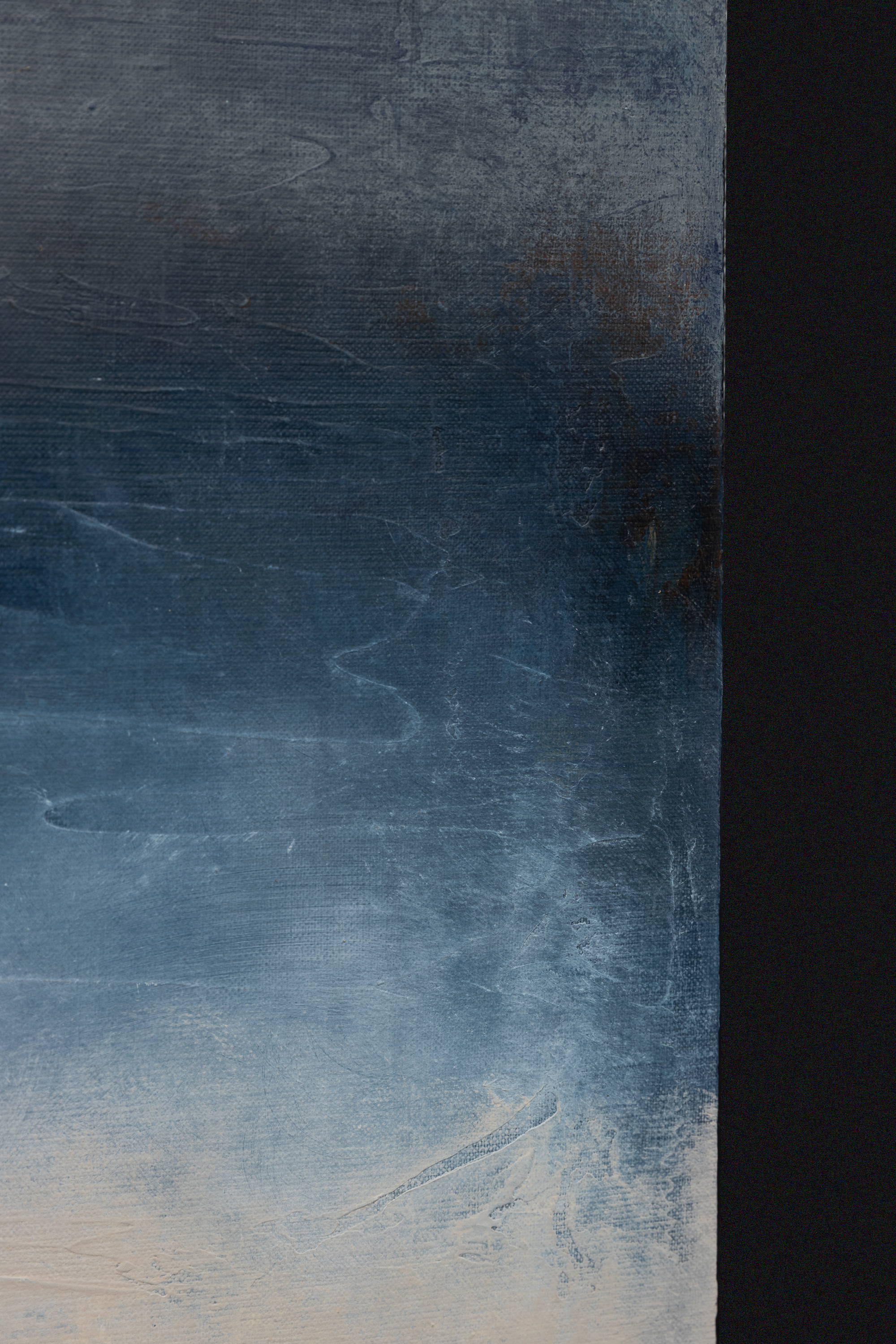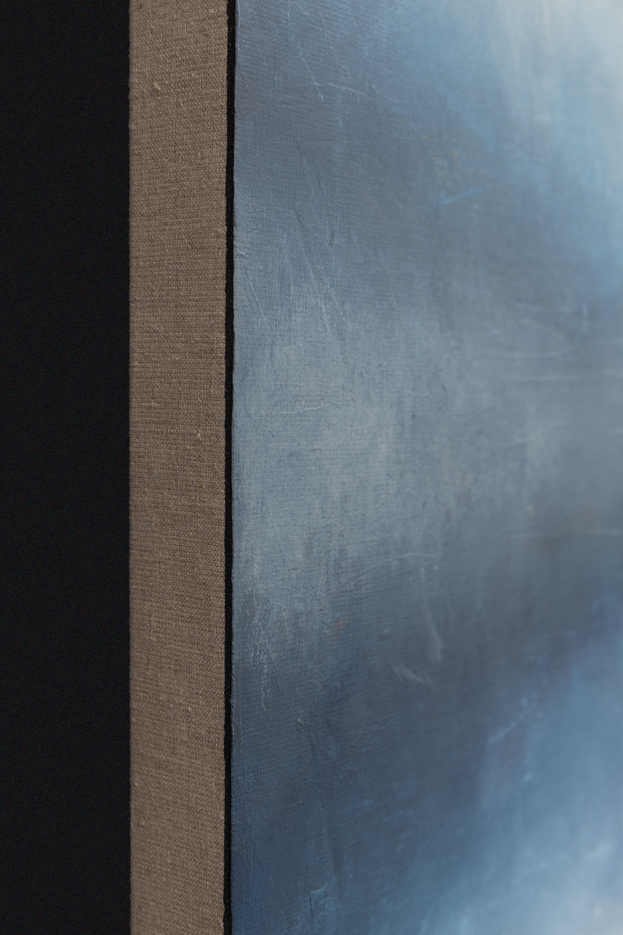 "Storm Coming" (80 x 200 cm) to monumentalne studium napięcia, jakie towarzyszy naturze tuż przed nadejściem burzy. W ramach cyklu Blinkered, Łukasz Olek rejestruje moment, w którym powietrze gęstnieje, a niebo powoli przybiera ciemne, nasycone odcienie indygo i szarości. Jako synestetyk, artysta przekłada tę specyficzną wibrację i ciężar atmosfery na język koloru i faktury, tworząc kompozycję, która mimo swojego dramatyzmu, emanuje wyrafinowanym spokojem. Praca powstała na surowym lnianym płótnie 3D o pionowym formacie, co potęguje wrażenie ogromu nieboskłonu. Technicznie obraz jest efektem misternego dialogu między wielowarstwowymi laserunkami a agresywnym skrobaniem powierzchni. Olek celowo „wycisza” pierwotną energię barw, odkrywając jednocześnie historię zapisaną pod spodem. Artysta często podkreśla, że tworzy przede wszystkim dla siebie, a kolekcjonerzy stają się częścią jego wizualnego dziennika dopiero po ukończeniu procesu. Jego dzieła, doceniane od Miami po Paryż, są dowodem na to, że „uczciwość materiału” i autentyczność zapisu chwili tworzą unikatową wartość inwestycyjną. "Storm Coming" to idealny wybór dla kolekcjonerów szukających sztuki o silnym ładunku emocjonalnym, która zbalansuje nowoczesną, minimalistyczną przestrzeń.