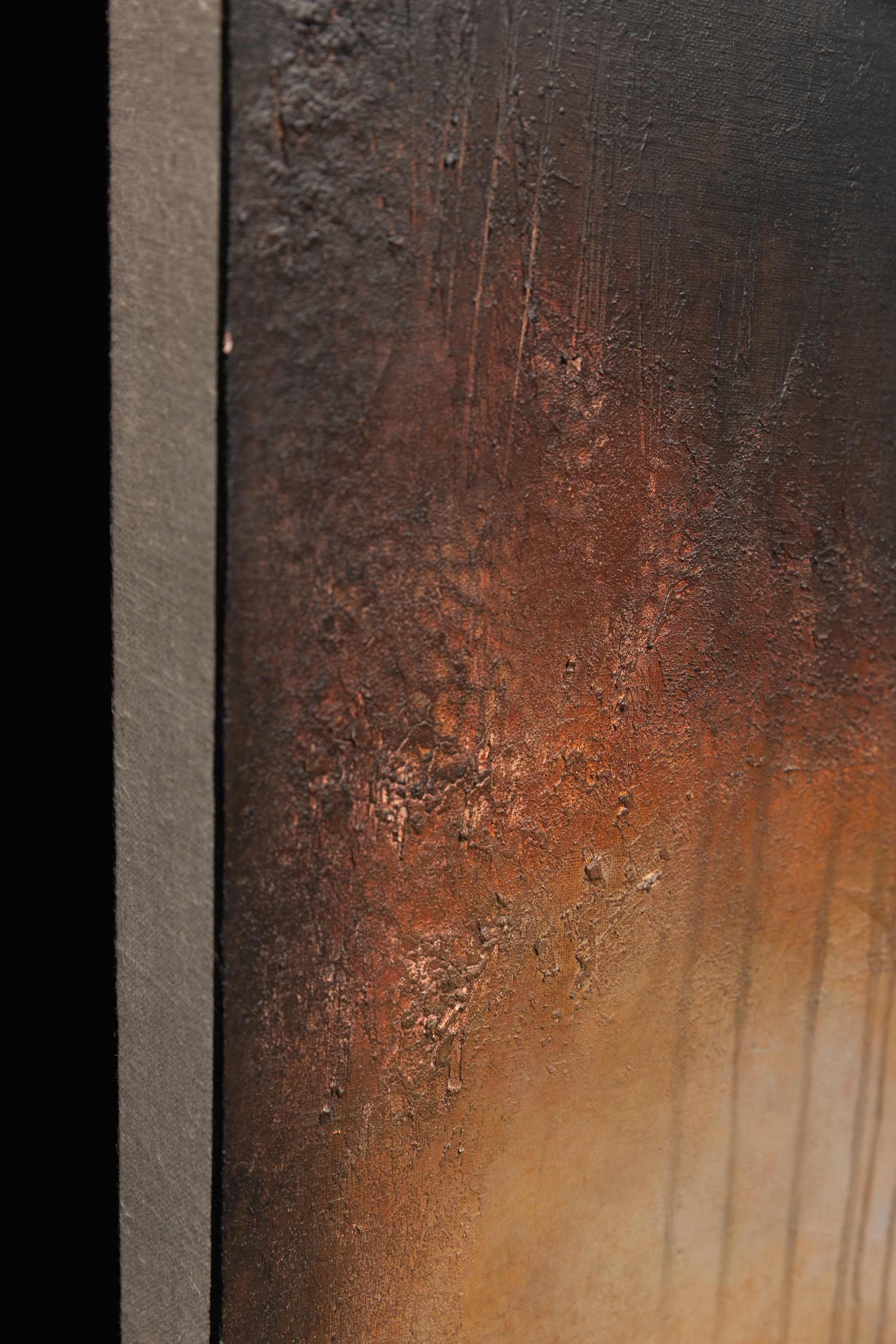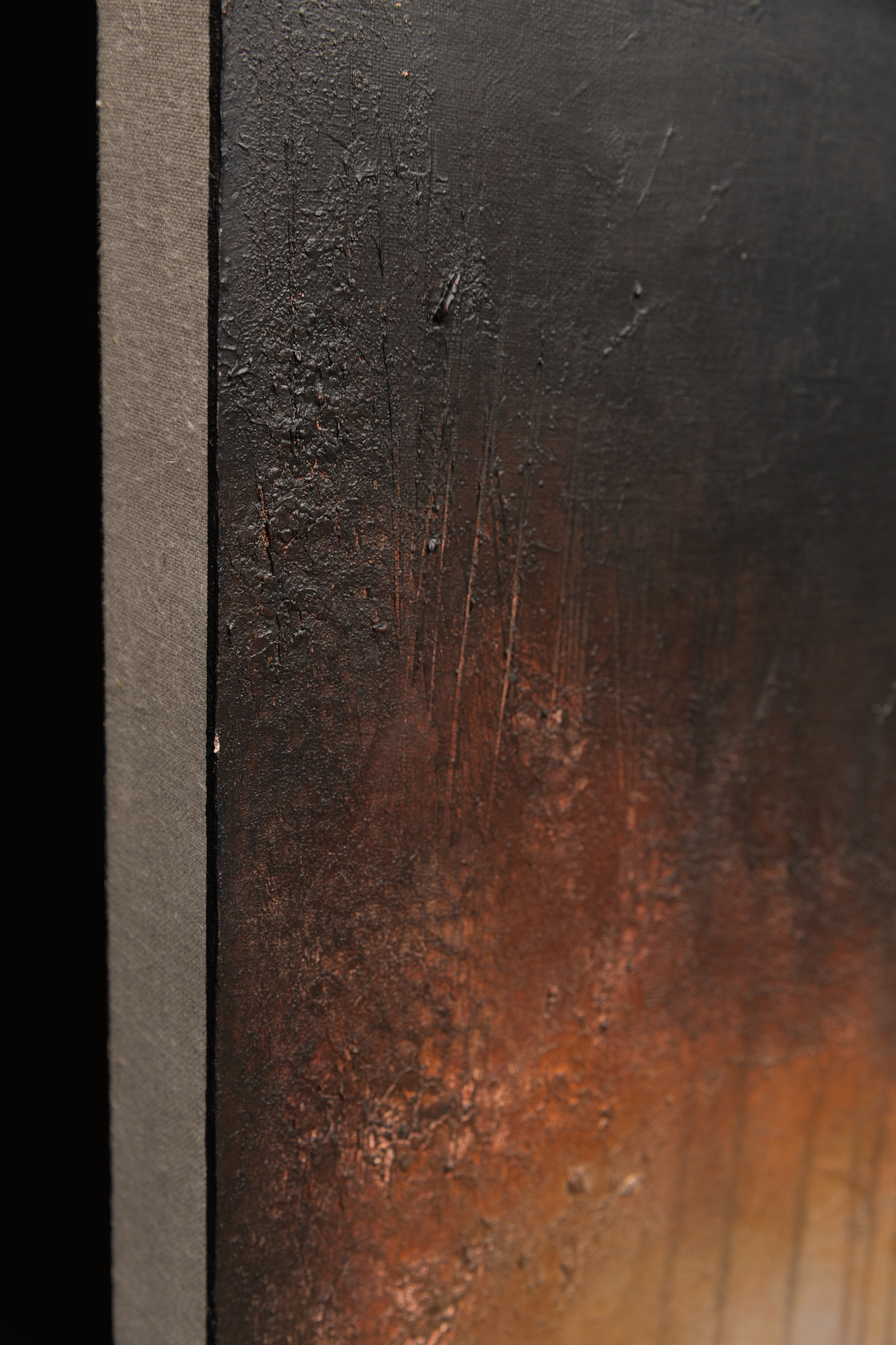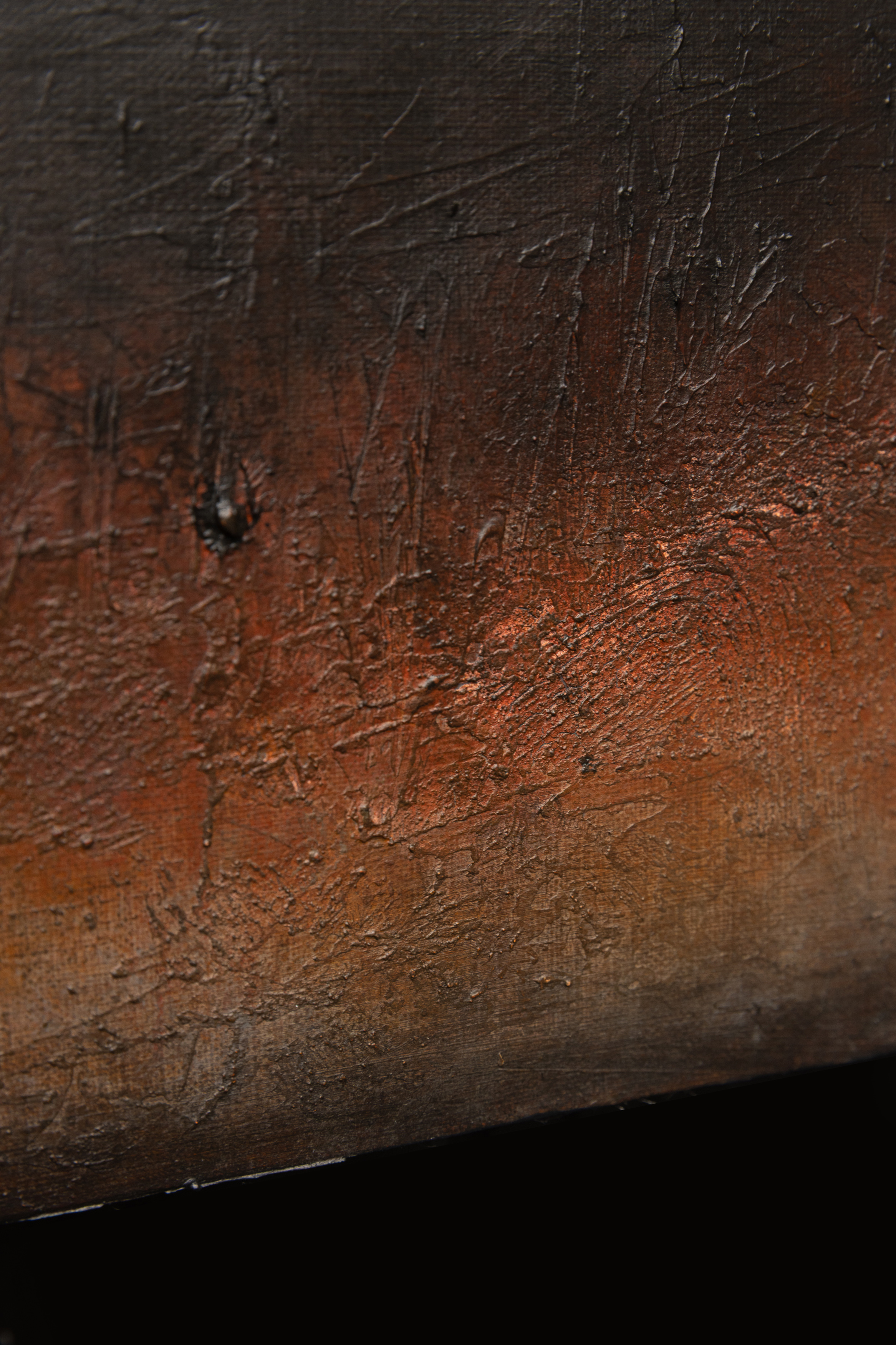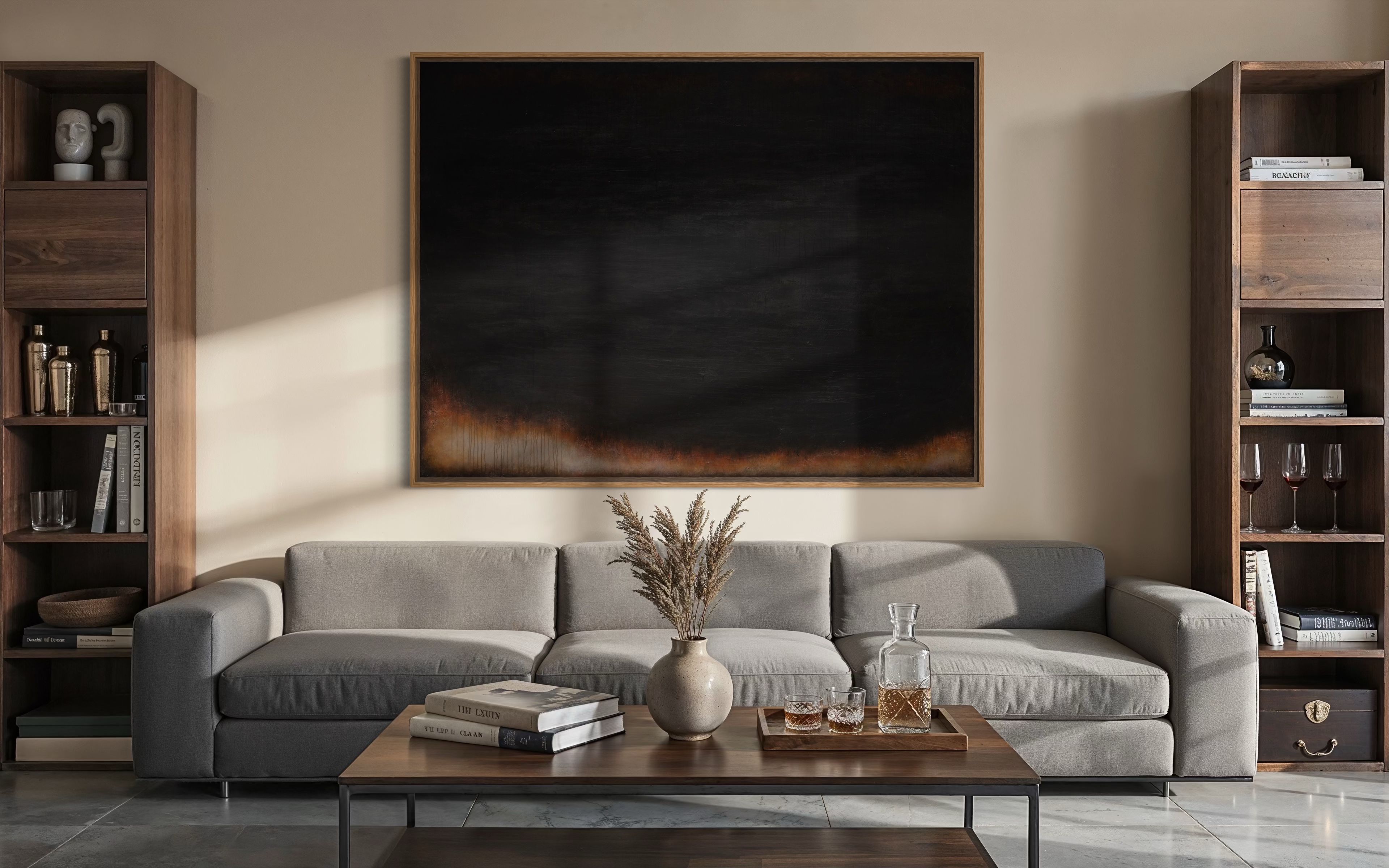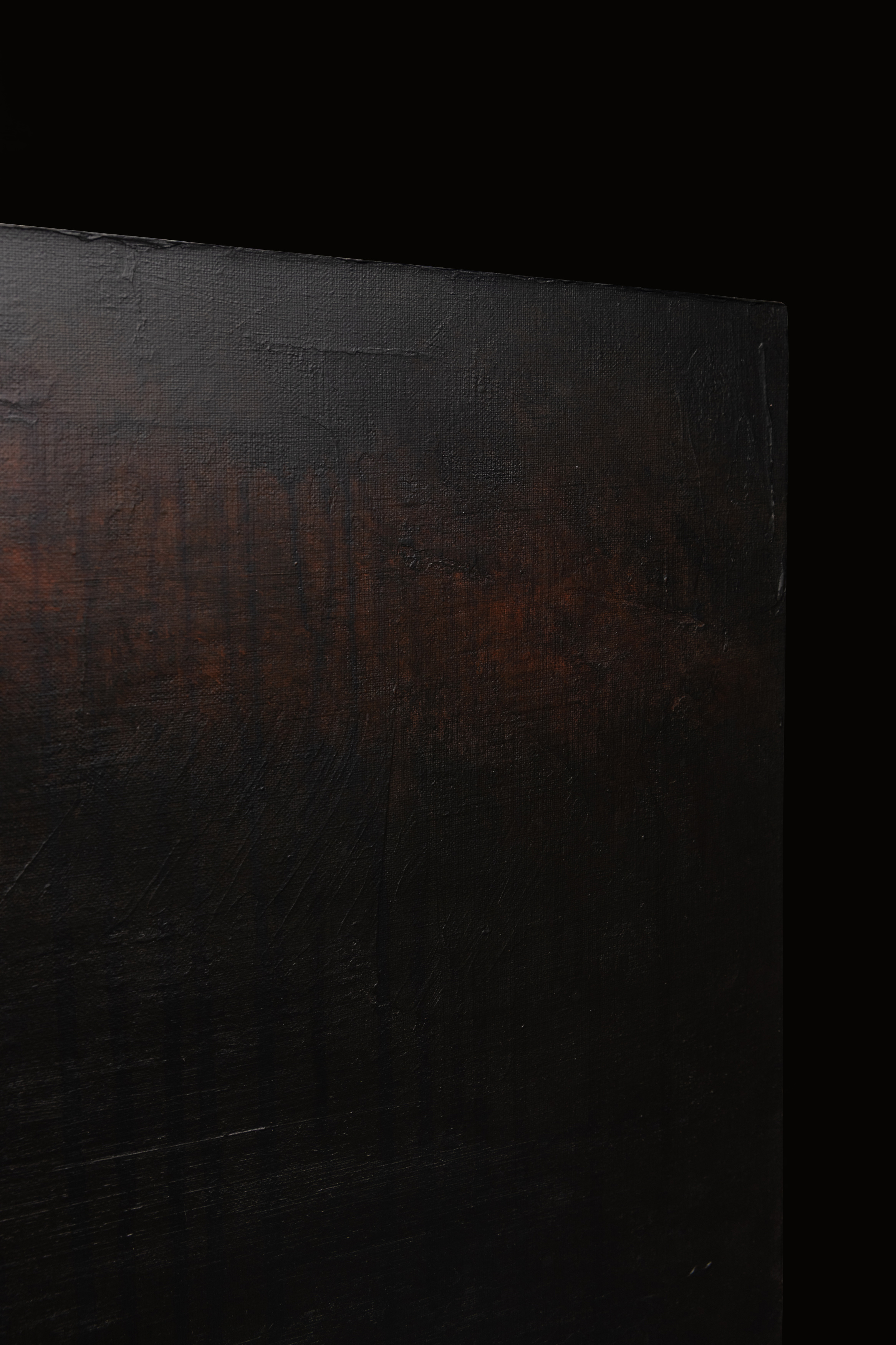 "Bones Of Man" (200 x 150 cm) to malarski zapis "godziny duchów" w jej najbardziej przejmującym wydaniu. Obraz z cyklu Blinkered chwyta moment, w którym niebo traci kolor i zmienia się w ciężką, aksamitną próżnię, podczas gdy ziemia pozostaje na chwilę rozświetlona powidokiem dnia. Dla Łukasza Olka proces twórczy jest formą terapii i medytacji – sposobem na uporządkowanie emocji i walkę z nieustannym pośpiechem świata. Praca powstała podczas nocnych sesji, napędzanych muzyką i wspomnieniami miejsc odludnych, budzącymi lęk przed zagubieniem. Artysta nakłada dziesiątki warstw farby, by następnie agresywnie je zdrapywać, odsłaniając „nie-maszynową” historię powstania dzieła. Ta cicha złożoność zachęca widza do odnalezienia własnych narracji w mroku. Nagradzany na arenie międzynarodowej (m.in. Europartfair w Amsterdamie), Olek tworzy dzieła, które wprowadzają wyrafinowany balans i spokój do nowoczesnych wnętrz.