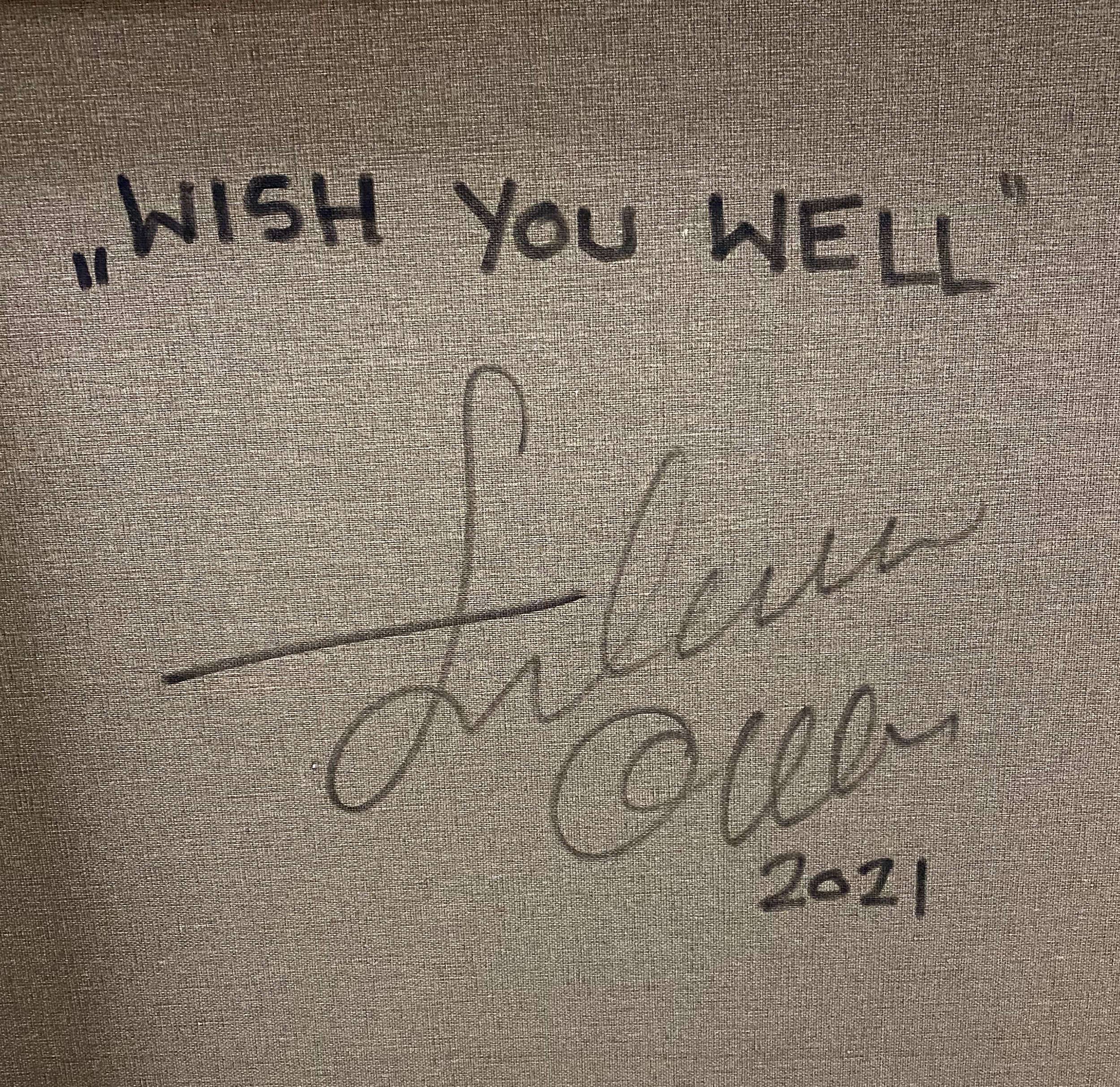 Ręcznie malowany obraz akrylowy „Wish You Well" Wymiar 170 x 110 cm, grubość krosna 4 cm. Technika: akryl na płótnie, pasta strukturalna, żel. Jest gotowy do zawieszenia (jedno zawiesie), boki w tonacji obrazu (ciemne), nie wymaga ramy. Sygnowany z przodu (prawy dolny róg, "Łukasz Olek 2021") oraz z tyłu (prawy górny róg, „Łukasz Olek, „Wish You Well”, 2021”) Możliwość zamówienia obrazu w innym wymiarze/tonacji. Blinkered to wycinek świata ukazujący się w obiektywie fotograficznym, przełożony na język malarstwa abstrakcyjnego. Fotograficzny sposób przedstawienia, oparty na ostrości i precyzji kompozycyjnej w zestawieniuz malarską spontanicznością jest oryginalnym zapisem rzeczy- wistości, który balansuje na styku malarstwa i fotografii. Dzieła prezentowane na wystawie to w przeważającej mierze studium pejzażu. Niejednorodny, ale jednocześnie odrębny skrawek przestrzenny został zawężony do zaledwie kilku pikseli, aby następnie zostać rozciągnięty na wielkoformatowy obraz.To co figuratywne, zostaje zredukowane do możliwie najprostszej, a tym samym najistotniejszej esencji formalnej. Malarstwo to, w odróżnieniu od fotografii, daje nam możliwości “podejrzenia” procesu twórczego, co jest zresztą zamierzoną formą dialogu z widzem. Możemy zobaczyć wielkoformatowe płótna zamalowane po kilka/kilkanaście razy, szerokimi pasami chłodnych i intensywnych kolorów o chropowatych i poszarpanych brzegach. Naprzemienne użycie laserunku i impasto, ujawnia nie tylko poszczególne warstwy obrazu a nawet jego pierwotną powierzchnię. Pieczołowitość w nakładaniu farb celem uzyskania elementów przestrzennych w fakturze tła, wydobywa z dzieł niejednorodne, aczkolwiek intensywne światło podkreślające wibrującą kolorystykę. Jednakże, te subtelnie, rozpływające się formy często zostają gwałtownie przecięte poprzez użycie agresywnych efektów wizualnych, takich jak nakładanie grubej warstwy farby nożem, przecierania czy żłobienia. Te zabiegi techniczne zachęcają nas do dokonania estetycznej wiwisekcji, poprzez poszukiwanie ukrytych detali na powierzchni prac. Mamy do czynienia z efektem dualistycznej percepcji, która polega na oglądaniu dużych obrazów z możliwie jak najbliższej odległości. Staranność warsztatowa wynika z umiejętności uważnej obserwacji. Artysta podejmuje się śmiałego zabiegu wyłuskania ze skrawka rzeczywistości wybranych elementów, dokonując ich dekonstrukcji, poprzez zabawę z podstawowymi wartościami formalnymi takimi jak rozmiar, kolor czy struktura. Efektem tych zabiegów są dzieła, które w niewymuszony sposób wabią nas swoją estetyką i wprowadzają w uprzywilejowany stan wizualnej kontemplacji.