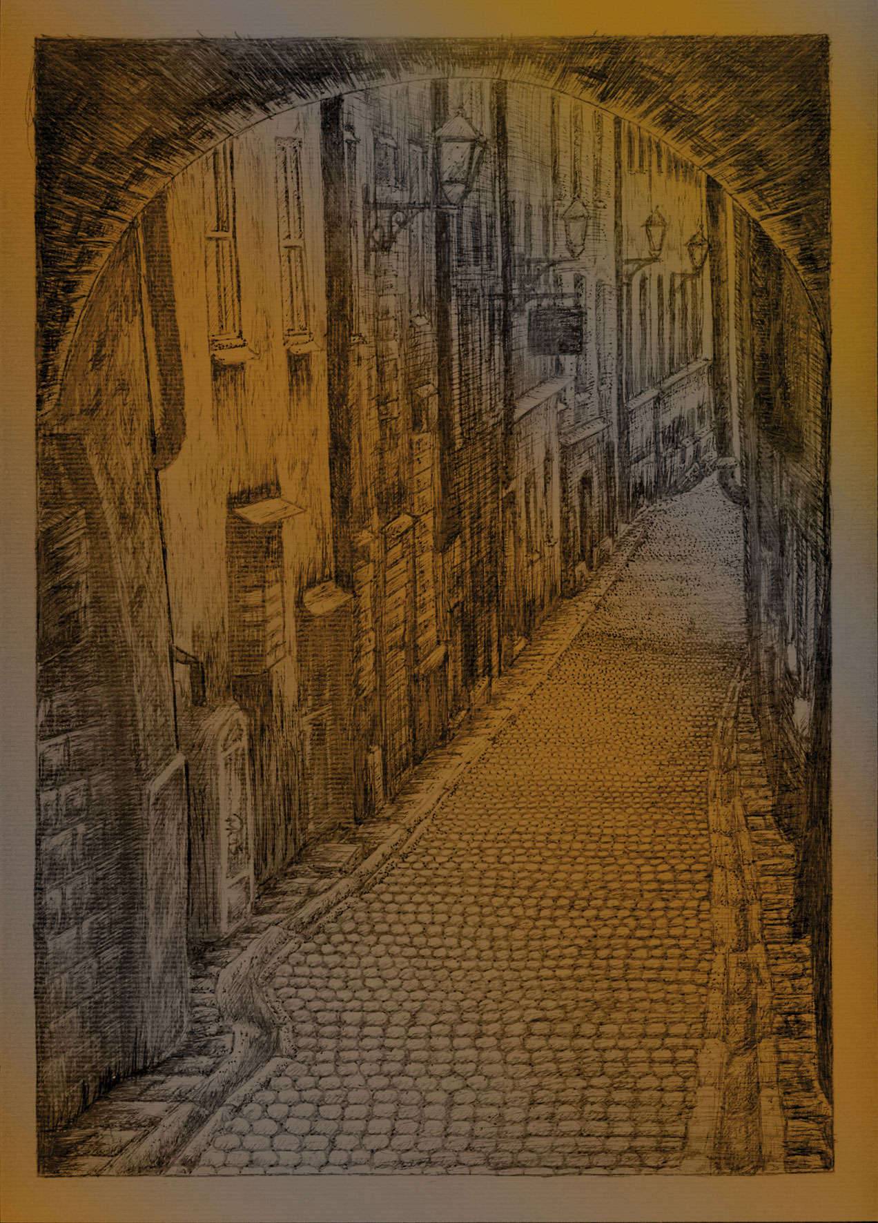 Praca utrzymana w konwencji grafiki użytkowej. Technika kreski.
