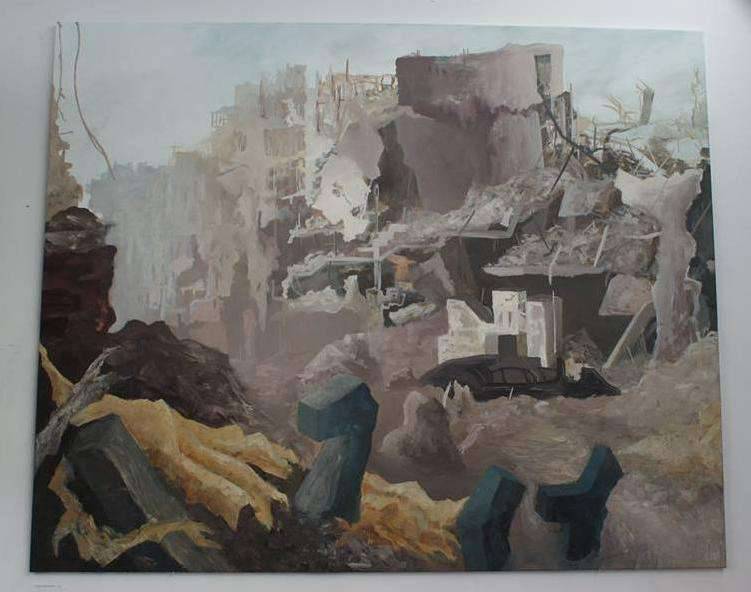 Na obrazie dominują stonowane odcienie szarości, brązu oraz beżu, które tworzą niepokojący krajobraz zrujnowanej rzeczywistości. Rozsypane fragmenty konstrukcji zdają się być bezładną stertą kształtów, w których można dostrzec resztki budynków. Całość jest jakby zanurzona w mglistej poświacie, nadając temu dziełu tajemniczy, niemal apokaliptyczny nastrój. Patrząc na ten obraz, czuć ciężar zniszczenia i ulotność chwili. Styl artysty łączy ekspresjonizm z nutą realizmu, co widać w precyzyjnie oddanych detalach i chaotycznej kompozycji. Grube pociągnięcia pędzlem nadają strukturę, a subtelne cieniowanie buduje głębię perspektywy. Jakby ktoś zaczął od nowa pisać historię, a tu mamy jedną z jej ponurych kart. Obraz budzi refleksję nad kruchością ludzkiej działalności i siłą natury, która potrafi w mgnieniu oka zamienić cywilizację w pył. "What's next?" – zdaje się pytać każdy, kto spojrzy na to dzieło. No i tu jakiś dzieciak mógłby zapytać: "Mamo, kto zbudował ten domek z klocków?". To tylko pokazuje, jak różne osoby mogą inaczej reagować na to samo dzieło. Obraz jest w stanie wywołać w nas dziwnego rodzaju melancholię, ale też skłania do zastanowienia. Sprawia, że chcesz się zatrzymać i pomyśleć nad kruchością świata. Plus, te rozmyte granice między kształtami to naprawdę sprytna sztuczka – invisible lines, które prowadzą oko widza przez całą kompozycję. Wszystko tu się łączy w niezapomnianą całość.