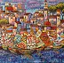 Obraz emanuje kolorami jak z bajki, pełno na nim ciepłych barw - czerwienie, pomarańcze, purpury, które kontrastują z chłodniejszymi odcieniami niebieskiego. Widać na nim urokliwe miasteczko, jak z jakiejś magicznej krainy, a przed nim pływające łodzie o zdobionych żaglach. Każda żaglówka to prawdziwe dzieło sztuki, wzory wirują, jakby opowiadały własną historię dla każdego, kto spojrzy. Kompozycja jest pełna życia, a to wzbudza ciekawość. Atmosfera obrazu przenosi nas do słonecznego miejsca, gdzie czas płynie wolniej. Styl malowania jest mocno impresjonistyczny, z nieco szorstkimi pociągnięciami pędzla. Maluje się to jak sen o idealnym nadmorskim miasteczku. Dzieciak by powiedział: "Wow, ale fajne!". Obraz przywołuje wspomnienia z wakacji, kiedy wszystko wydaje się prostsze. Już od pierwszego spojrzenia można poczuć niesamowitą energię - kind of magic. Jest w tym coś hipnotyzującego, co sprawia, że chcesz tam być, usiąść na żaglówce i zdmuchnąć piankę z latte, patrząc na ten śliczny widok.