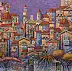 Obraz przedstawia malowniczą panoramę miasta pełnego uroczych, ciasno ustawionych budowli. Kolory królują tu jak król i królowa – purpury i ciepłe odcienie terakoty dominują, tworząc harmonijną kompozycję, która jest jednocześnie spokojna i dynamiczna. Dachy, przyciągające uwagę swoją czerwienią, przeplatają się z bielą okien i drzwi, co wprowadza rytm i nadaje całości niezwykły charakter. Z obrazu emanuje atmosfera dawnych miast śródziemnomorskich, gdzie czas płynie wolniej, a życie toczy się w rytmie słońca. Styl artystyczny jest pełen impresjonistycznego czaru – artysta zastosował gęste pociągnięcia pędzla, co dodaje tekstury i głębi. A ta głębia! Można się niemal poczuć częścią tej miejskiej sceny. Patrząc na te budynki, można poczuć ciepłe powietrze i usłyszeć szemrzące rozmowy mieszkańców. Emocje, jakie wywołuje ten obraz, to połączenie nostalgii i zachwytu. Przypomina dzieciństwo i wakacyjne chwile spędzone w uroczym miasteczku. It takes you back. Mały domek po lewej jest taki jak z bajki! Kompozycja przywołuje myśli o przytulnych zakątkach i sennych popołudniach. Obraz jest jak okno do innego świata – pełnego ciepła i harmonii. To bardziej marzenie niż realność.
