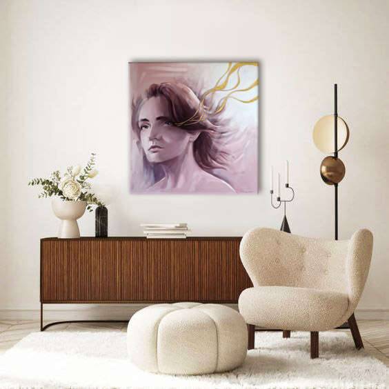 Kolorystyka obrazu jest jasna i monochromatyczna, czyli obraz wykonany jest w odcieniach jednego koloru. Atutem pracy jest użycie szlagmetalu, który świeci pod różnym kątem co daje niepowtarzalne wrażenia wzrokowe. Dzieło jest częścią otwartego cyklu malarskiego „Strumień świadomości”. Na płótnach odnajdujemy kobiety, które są otoczone złotymi nićmi. Symbolizują one wcześniej wspomniany strumień świadomości. A czym on dokładnie jest? Oznacza rodzaj monologu wewnętrznego. Zapis umysłowego przeżywania danej osoby, togo co aktualnie widzi, słyszy, czuje, a nawet jej myśli, które jej się nasuwają w danej chwili. Obraz jest pokryty błyszczącym werniksem. Sygnatura w dolnym prawym rogu oraz z tyłu dzieła. Boczne części podobrazia stanowią kontynuację obrazu. Kompozycja dzieła jest otwarta. Obraz jest starannie wykonany z dbałością o szczegóły. Dzieło spokojne i harmonijne, na pewno było by ciekawym elementem wystroju wnętrza Obraz znajdował się na dwóch indywidualnych wystawach artystki. Pierwsza odbyła się we wrześniu 2022 roku w Miejskim Centrum Kultury w Tomaszowie Maz., a druga w styczniu 2023 roku w Dom Kultury „Śródmieście” w Białymstoku