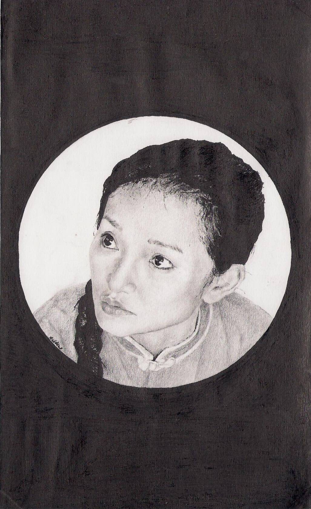Czarny tusz , ołówek na papierze. Obraz oprawiony (passe partout).