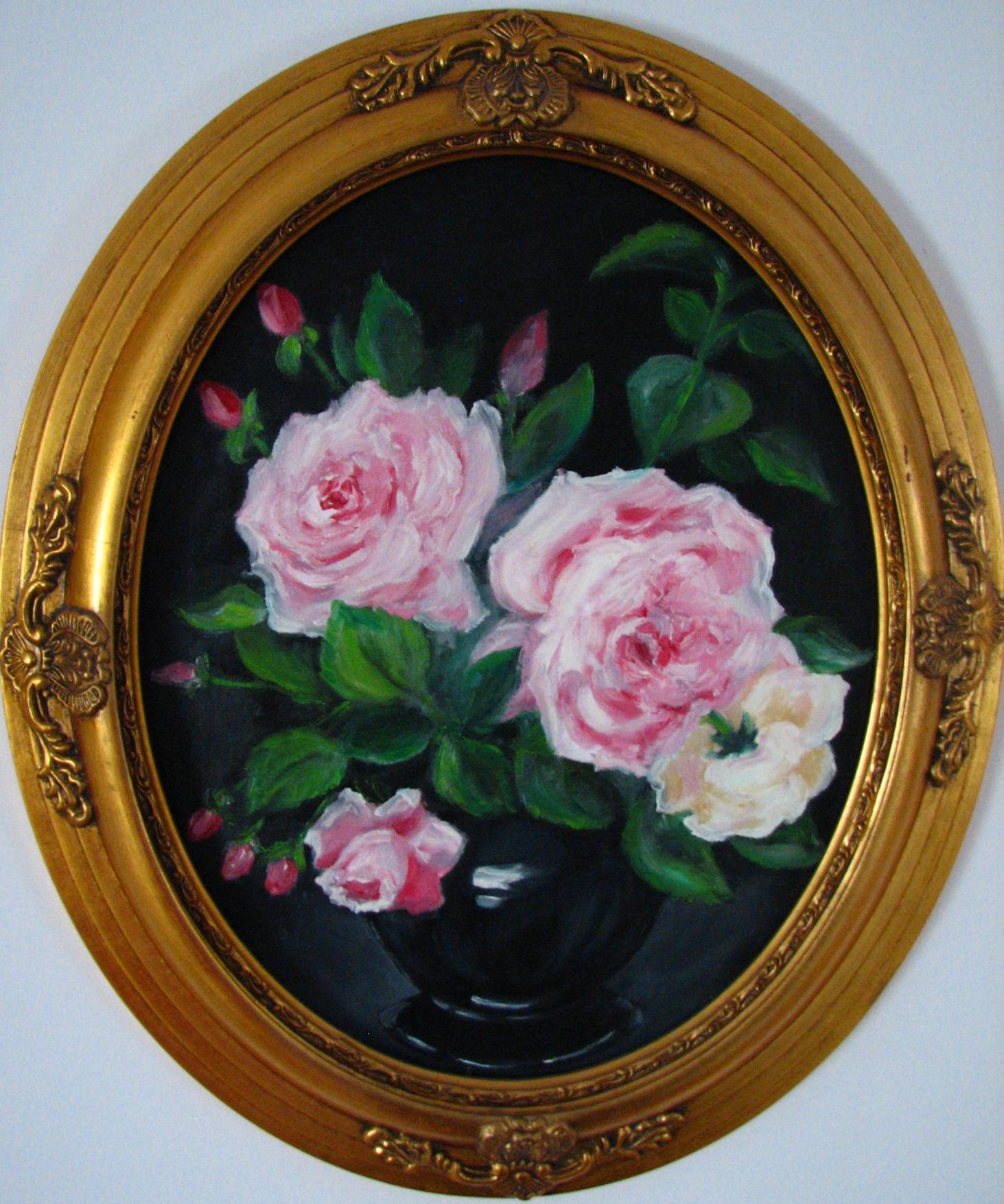 olej na dykcie, 40x50, 11 IX 2010 r., kopia ze zdjęcia z internetu, zainspirowane pracą Parastoo Ganjei 'Pink and yellow roses', obraz w galerii własnej, mogę namalowac kopię, obraz do sprzedaży bez ramy