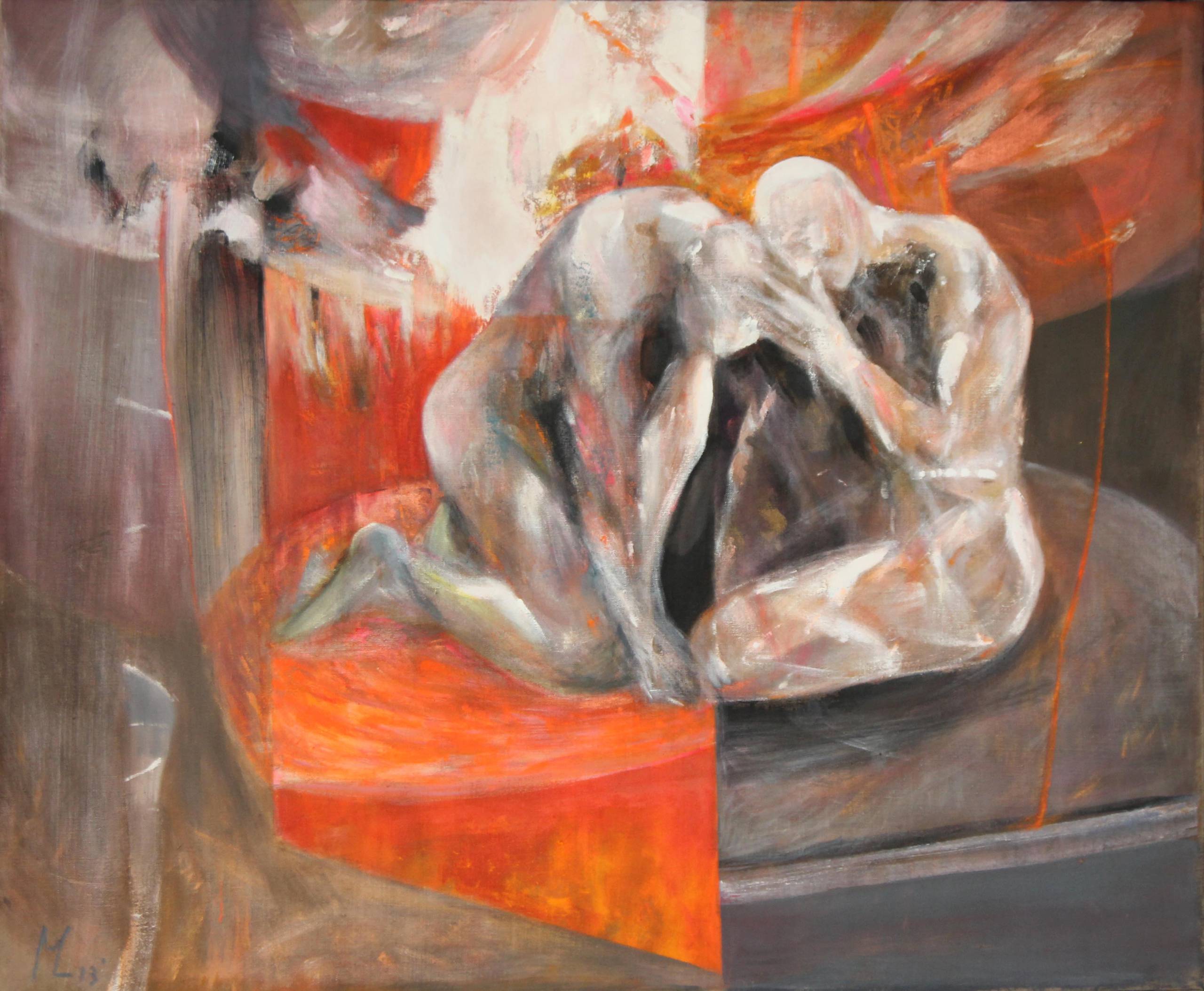 figuratywne, malarstwo, czerwień, ludzie, rozmowy