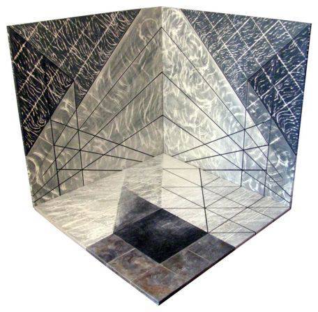 Na tym obrazie widzimy intrygującą grę form i kolorów. Dominują szarości i czernie, które przenikają się w niepowtarzalny sposób. Linie tworzą geometryczne wzory, przypominające labirynt albo tajemnicze tunele. Kompozycja przywodzi na myśl coś futurystycznego, a może nawet kosmicznego. Czuć tu spokój, ale jednocześnie pewną dynamikę. Artysta z pewnością skorzystał z technik takich jak perspektywa i iluzja optyczna, by przyciągnąć wzrok widza. A jak się dokładniej przyjrzeć, to można poczuć się trochę jak w środku jakiejś układanki, gdzie wszystko idealnie do siebie pasuje. Może ktoś powiedziałby, że patrzenie na ten obraz to jak wędrówka w głąb siebie. Wzory wydają się ożywać i prowadzić w nieznane rejony wyobraźni. A linie? Te linie! One mogą symbolizować drogę, wybory, życie. Takie tam, wiecie, wisienki na torcie. Feeling zagubienia, a jednocześnie ciekawości – co dalej na końcu tego labiryntu? Dzieciak pewnie by powiedział: "O, ale fajny obrazek jak z gry komputerowej!" Emocje? Niepewność, zachwyt, odrobina oszołomienia. Wszystko to miesza się, tworząc niepowtarzalną atmosferę, którą można odczuć przez chwilę, zerkając na to dzieło. Coś w stylu "WOW", jakby ktoś właśnie odkrył coś zupełnie nowego.
