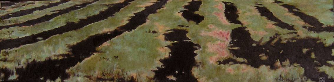 jest to fragment pola z ciemnymi wypalonymi bruzdami