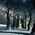 Obraz tchnie chłodnym nocnym pejzażem, gdzie powyginane drzewa o czarnych, poskręcanych gałęziach wyłaniają się z białego śnieżnego dywanu. Gwiaździste niebo, pełne migoczących punktów, dodaje tajemniczości i głębi. W oddali majaczy budowla przypominająca piramidę, której wejście rozjaśnia ciepłe, złote światło. Kompozycja obrazu prowadzi wzrok w stronę światła, tworząc intrygujący kontrast z ciemnością wokół. Atmosfera jest jak bajka z dreszczykiem, pełna niepokoju, ale i fascynacji. Artysta wykazał się nie lada finezją w oddaniu detalów i w grze światłocieni. Można by rzec, że to styl magic realism, gdzie rzeczywistość miesza się z fantastyką. Obraz skłania do refleksji nad podróżą ku nieznanemu, wywołując uczucie tęsknoty za czymś większym. Niby nic, a jednak coś intrygującego. Wow, jak tam musi być zimno, powiedziałoby dziecko. A może to droga do naszej wyobraźni? Patrząc na ten obraz, trudno oprzeć się zadumie, że w tym melancholijnym krajobrazie każdy może odnaleźć kawałek siebie.
