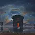 Na obrazie dominują głębokie odcienie granatu i ciemnej szarości, które tworzą tajemniczą atmosferę półmroku. Centralnym punktem jest masywna, kamienna struktura, z której wnętrza bije intensywna, czerwona poświata. Czuje się jakbyśmy byli świadkami czegoś magicznego, wręcz mistycznego. Symetrycznie rozmieszczone w tle tajemnicze formy przypominają strażników strzegących tajemnicy. Artysta zastosował technikę mieszania kolorów, by oddać ulotne kształty mgieł i chmur. Obraz może wywoływać poczucie zagubienia, ale jednocześnie fascynacji niewyjaśnionymi zjawiskami. Nastrój na obrazie jest pełen suspensu, a każdy element zdaje się opowiadać część nieznanej historii. A ja bym tam chciał pobyć, bo te światła są jak z bajki. Malarska technika jest precyzyjna, pozwalająca na szczegółowe oddanie kształtów i tekstur, co sprawia, że całość przypomina realistyczny sen. To jest po prostu mind-blowing, jak z kosmosu. Obraz jest pełen emocji, które mogą poruszyć wyobraźnię każdego odbiorcy, budząc osobiste refleksje na temat drogi do odkrywania nieznanego.