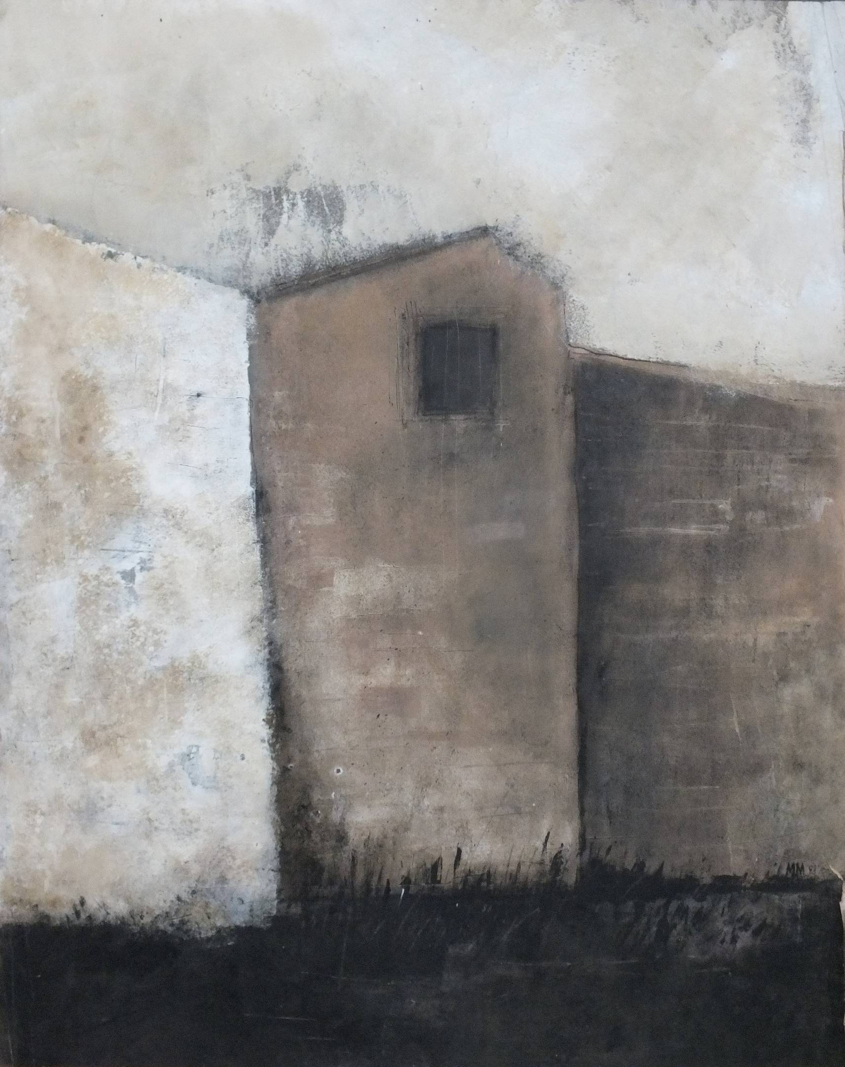 Obraz przedstawia minimalistyczną kompozycję, gdzie dominują neutralne kolory - beże, brązy i subtelne odcienie bieli. W centrum widnieje konstrukcja przypominająca stary budynek, z prostokątnym oknem, patrzącym jak oko na świat. Kształty są surowe, trochę jakby dziecko próbowało je narysować, lecz w tym chaosie jest jakaś cisza i spokój. Kompozycja zdaje się być bardzo surowa ale jednocześnie hipnotyzująca, cierpliwie opowiada swoją historię. Atmosfera obrazu jest melancholiczna, jakby ktoś właśnie wspominał dawne czasy. Wydaje się, że artysta użył delikatnych pociągnięć pędzlem, może techniki mieszanej, aby uchwycić tę subtelną patynę czasu. Patrząc na to dzieło, ma się uczucie, że jest się świadkiem jakiejś intymnej chwili, jakby to była „silent whisper” o przeszłości. Obraz może wzbudzać emocje tęsknoty, zadumy. Gdy się na niego patrzy, chce się wtapiać w te kształty, poczuć ich ciężar i chropowatość. Może ktoś przypomina sobie wakacje u babci na wsi, a może czuje się zagubiony w myślach o nieznanych miejscach. "Tam jest dom!" - mogłoby powiedzieć dziecko, widząc zarys budynku. Ten obraz trafia prosto "w punkt" naszej duszy i zostawia ślad, który trudno zmazać.