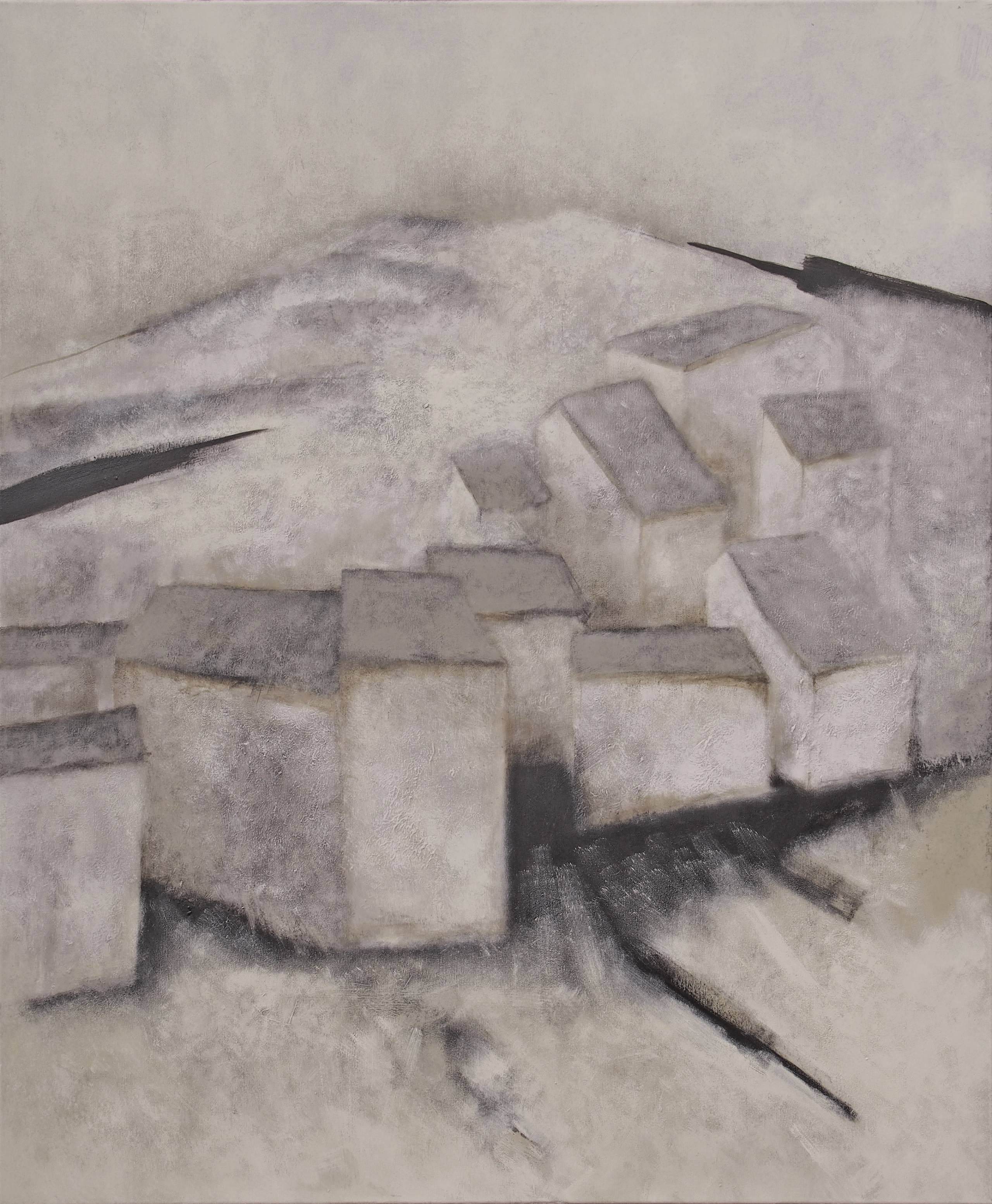Na obrazie dominują pastelowe odcienie szarości i beżu, przypominające mglisty poranek w sennym miasteczku. Budynki przedstawione są jako proste bryły, które wydają się delikatnie rozmyte, niczym widziane przez zroszoną szybę. Kompozycja jest harmonijna, z subtelnym stopniowaniem tonów i cieni. Atmosfera emanująca z dzieła jest spokojna, niemal kontemplacyjna. Nastrój przywodzi na myśl ciche chwile przed świtem, gdy wszystko jest jeszcze uśpione. Artysta wykorzystał delikatne pociągnięcia pędzla, które nadają obrazowi subtelną teksturę. Może jego styl można by opisać jako dreamy. Odbiorcy mogą odczuwać melancholię, ale też spokój i refleksję nad przemijaniem – czasem nasuwa się myśl o kruchości chwili. Patrzę na to i myślę sobie, że te domy mogą być schronieniem przed całym chaosem świata. Trochę jak w bajce, której nie pamiętam tytułu, ale była naprawdę fajna! Dzieło zdaje się szeptać do nas przeszłe historie, niespiesznie przywołując wspomnienia. Ktoś może zanurzyć się w swych własnych myślach, odnaleźć w tym obrazie część swojego świata. A ty co widzisz, patrząc na te domy?