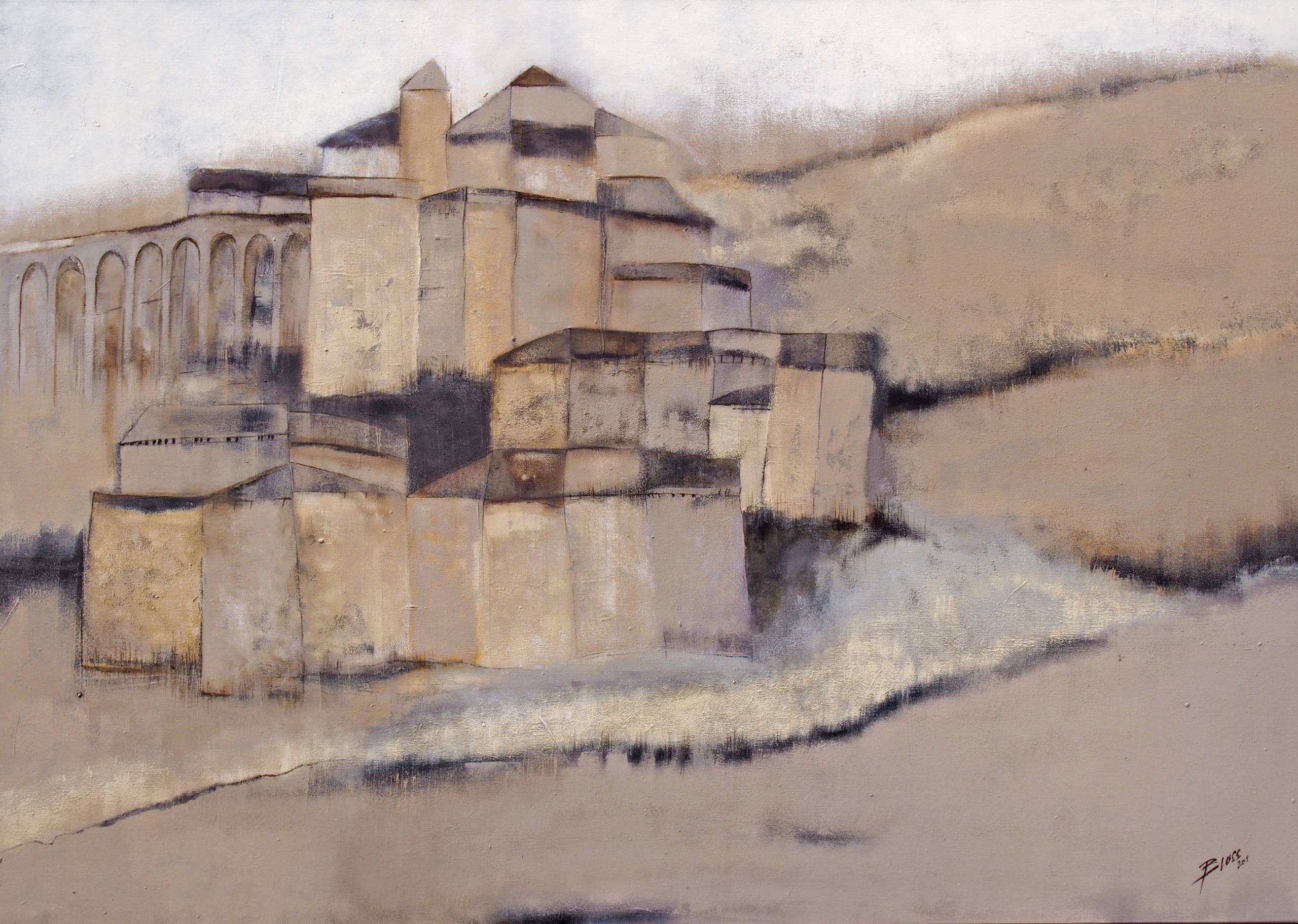 Obraz prezentuje złożoną kompozycję delikatnych odcieni beżu, brązu i bieli, które splątują się w iluzję antycznego miasta. Architektoniczne formy budowli tworzą harmonijny, choć nieco tajemniczy krajobraz. Przestrzeń jest zagadkowa, z lekką nutą mgły unoszącej się nad horyzontem. Atmosfera emanuje spokojem, ale także pewną melancholią, jakby opowiadała historię miejsc odległych w czasie. Artystyczna technika jest subtelna, operując cienką linią między abstrakcją a realizmem. Kolego, to painting wciąga nas w głąb niekończącej się doliny snów. Artysta używa miękkich, rozmytych pociągnięć pędzla, co dodaje pejzażowi eteryczności, jakby miasto było tylko wspomnieniem. Może budzić w odbiorcy uczucia cichego podziwu albo refleksji. Hej, to przypomina mi zamek z bajki! Dziecko pewnie zapytałoby o księżniczkę mieszkającą w jednym z tych domów. Podziwiam subtelną grę światła i cienia, która jest jak szept przeszłości. Wizualna cisza płótna sprawia, że przenosimy się myślami do miejsc, które istniały tylko w naszej wyobraźni. To miejsce jest magiczne, prawda?