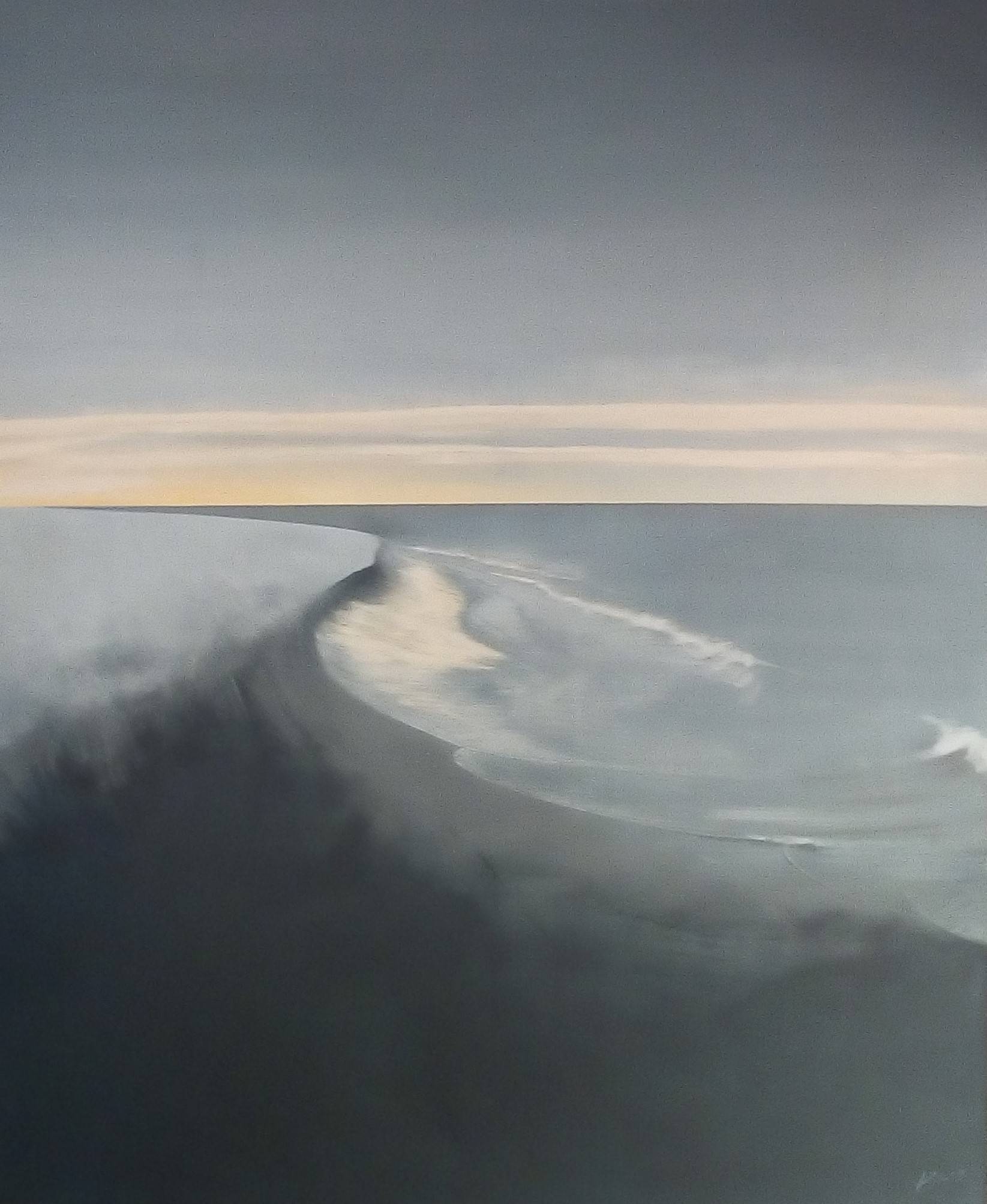 Obraz przedstawia spokojne, ale jakże intrygujące ujęcie morza. Szarości i błękity dominują paletę, przeplatając się z subtelnymi akcentami beżu, które przypominają o zachodzie słońca na horyzoncie. Kompozycja jest minimalistyczna, ale właśnie w tej prostocie tkwi jej siła. Horyzont dzieli przestrzeń, tworząc poczucie nieskończoności, a fale łagodnie przechodzą z jednego odcienia w drugi. Patrząc na to, można poczuć lekki chłód morskiej bryzy. Artysta zastosował technikę, która wydaje się być mieszanką akwareli i oleju, co dodaje obrazowi delikatności i głębi. Atmosfera tego dzieła to mieszanka ciszy i refleksji. Może wydawać się melancholijna, ale jest też coś kojącego w tym bezkresie. Każdy, kto patrzy, odnajdzie w sobie inne emocje. Dziecko mogłoby powiedzieć: "Morze jest jak wielki płaszcz mamy, który chroni mnie przed światem." Takie proste, a tak trafne. Styl artysty jest zarówno nowoczesny, jak i klasyczny, co sprawia, że obraz jest timeless, a może raczej ponadczasowy - kto wie? Odbiorca może poczuć nostalgiczne tęsknoty, ale i odnaleźć spokój. Patrząc na to dzieło, sam zaczynam marzyć o spacerach po plaży, kiedy słońce zaczyna chować się za horyzontem. Każda linia i kolor zdają się prowadzić widza w głąb własnych myśli. Coś w rodzaju podróży w nieznane.