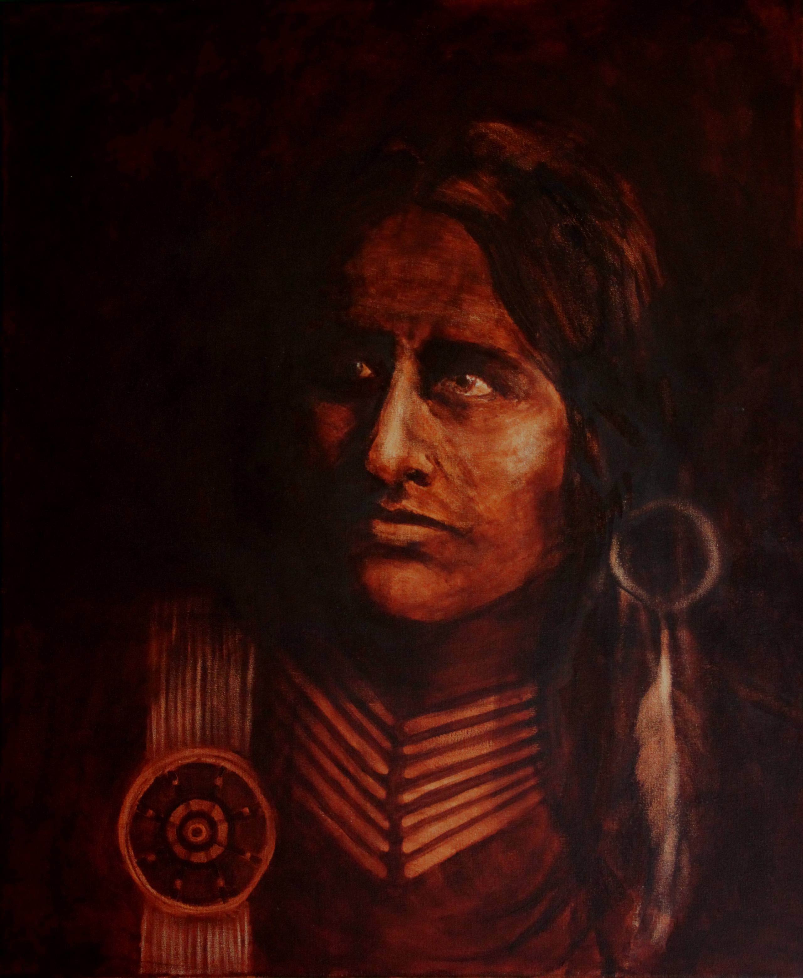 Na obrazie widać portret osoby o ciemnych oczach i surowym wyrazie twarzy. Dominują tu ciepłe odcienie brązu, co nadaje dziełu nieco nostalgiczny klimat. Twarz zajmuje centralną część kompozycji, a wokół niej rozpościera się delikatny, niemal mglisty cień. Nastroje, jakie wywołuje to dzieło, są mieszane – trochę tajemniczości, trochę zadumy. Artysta zastosował technikę chiaroscuro, co dodaje głębi i trójwymiarowości. Przepiękne detale, jak pióro czy medalion, wskazują na bogatą symbolikę. Co czuje odbiorca? Na pewno coś mocnego – może tęsknotę za minionym czasem lub podziw dla dziedzictwa kulturowego. A ja patrzę na to i myślę, o co mogło chodzić artyście? Jest tu taki vibe, jakby obraz emanował ciepłem i siłą. Moje dziecko powiedziało, że to wygląda jak prawdziwa osoba. I w sumie coś w tym jest, bo portret wydaje się niemal mówić do nas. Taka sztuka, która nie tylko kąsa oczy barwami, ale też prowadzi dialog z sercem widza. Fascynujące, jak można zawrzeć tyle emocji w jednym obrazie!