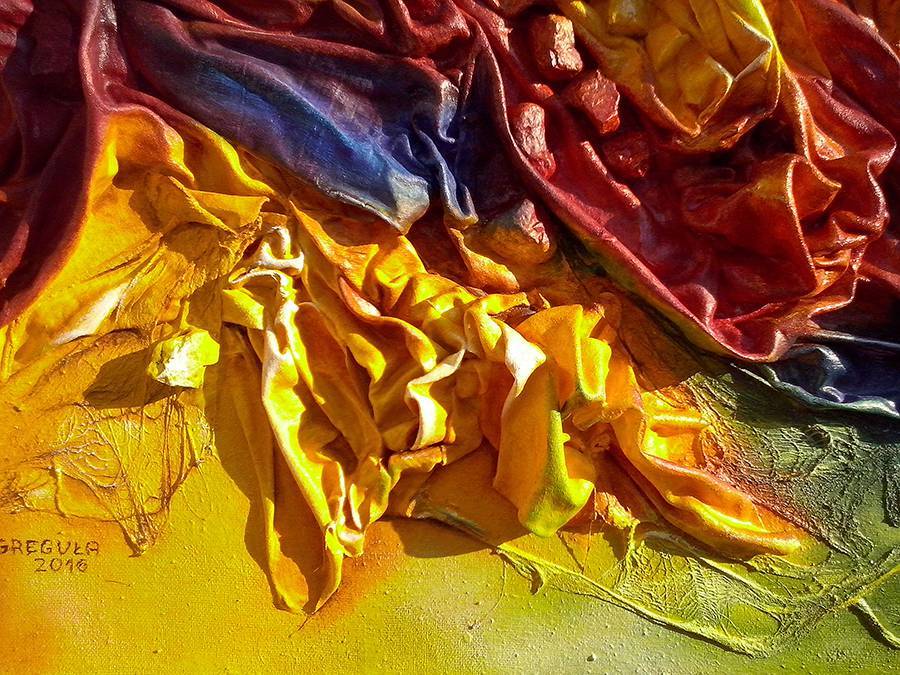 Technika olejna + technika własna Wysokość faktury obrazu - do 3 cm ponad powierzchnię płótna