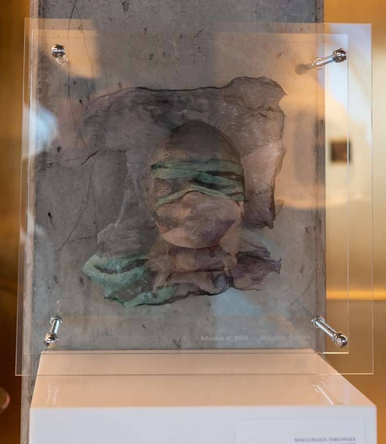 47x47x20 cm rok: 2018 Rzeźba wykonana z jedwabiu i naturalnych materiałów.