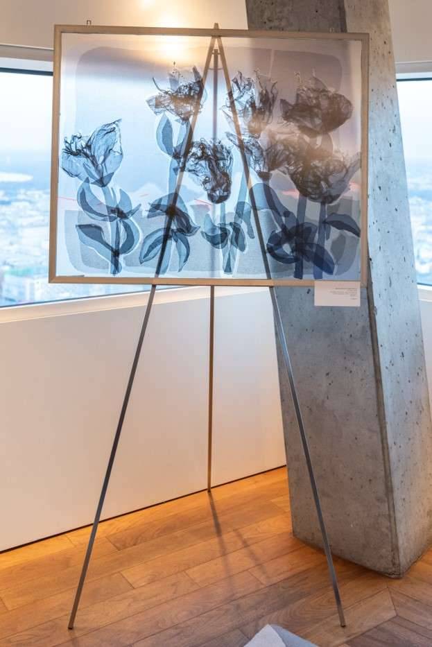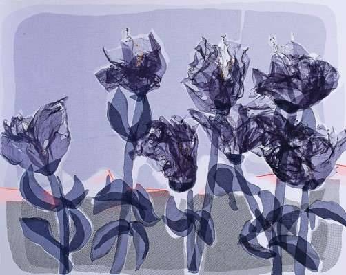 year: 2014 Obraz wykonany ze szkła, jedwabiu i materiałów. Ciągle, bez przerwy podziwiamy piękno natury. Ono nas otacza, obezwładnia, pozwala swobodnie oddychać, odpręża. Piękno to nie przemija pod osłoną nocy. Trwa, delikatnie bujając się na wietrze, śpiąc i kąpiąc się w świetle gwiazd. Nieuchwytna chwila TERAZ, która jest rzeczywistością przez ułamek sekundy zatrzymała się w ruchu. Trwa! Jest TERAZ. Lecz kiedy zamkniemy oczy przeminie. Przezroczystość materiałów pokazuje ulotność tej chwili, jej króciutkie, ale jakże piękne życie.